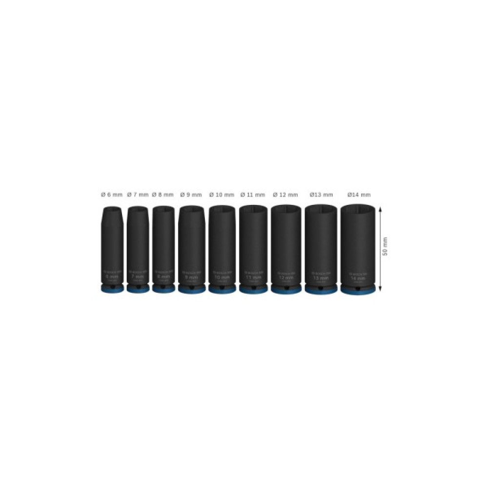 Набір, торцевих, головок, Bosch, Professional, ударних, торцевих, Deep, 9шт, 14, 50мм, 2608003035