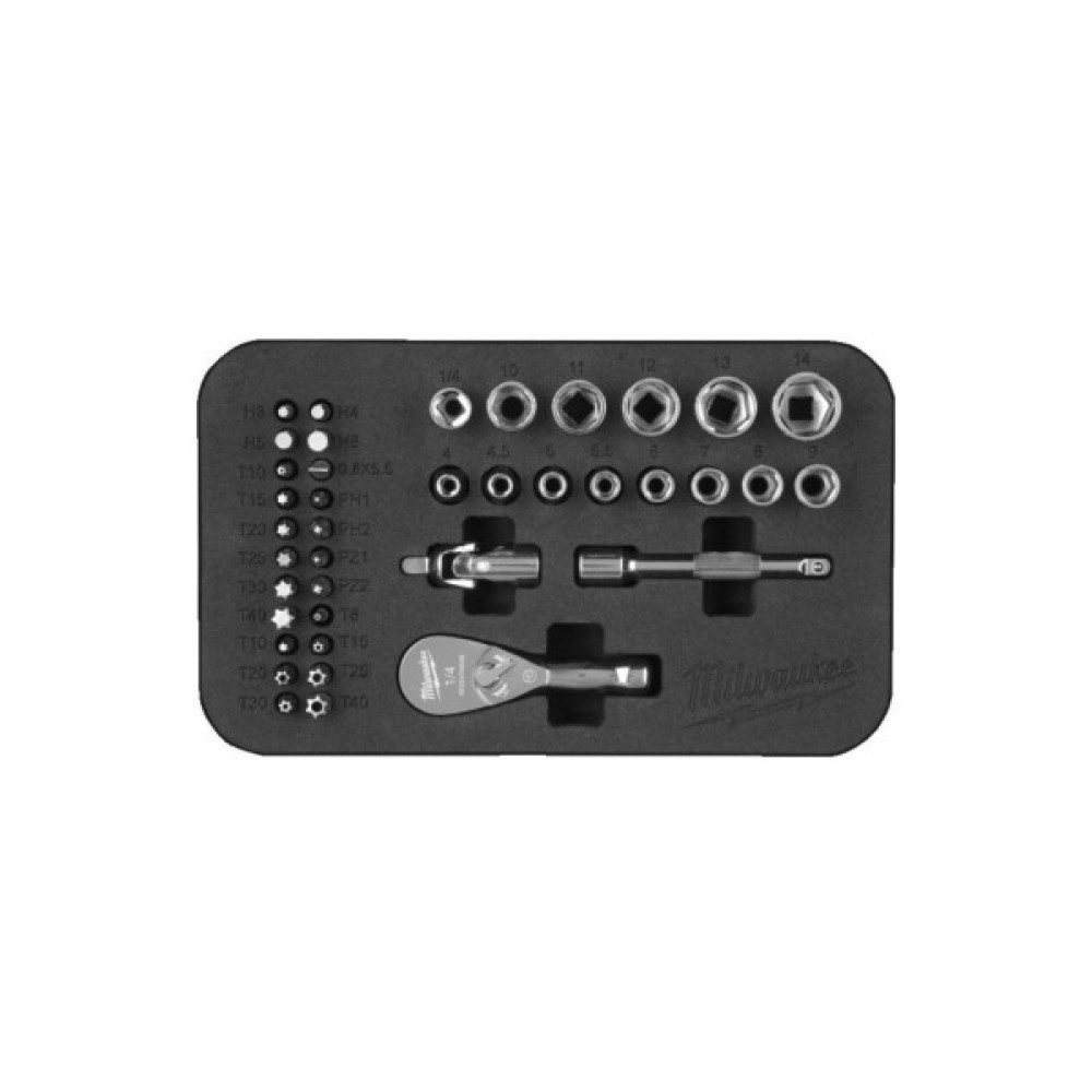 Набір торцевих головок Milwaukee з тріскачкою та фурнітурою 1/4", 4 - 14 мм + ударні біти 39 шт. (4932492672)