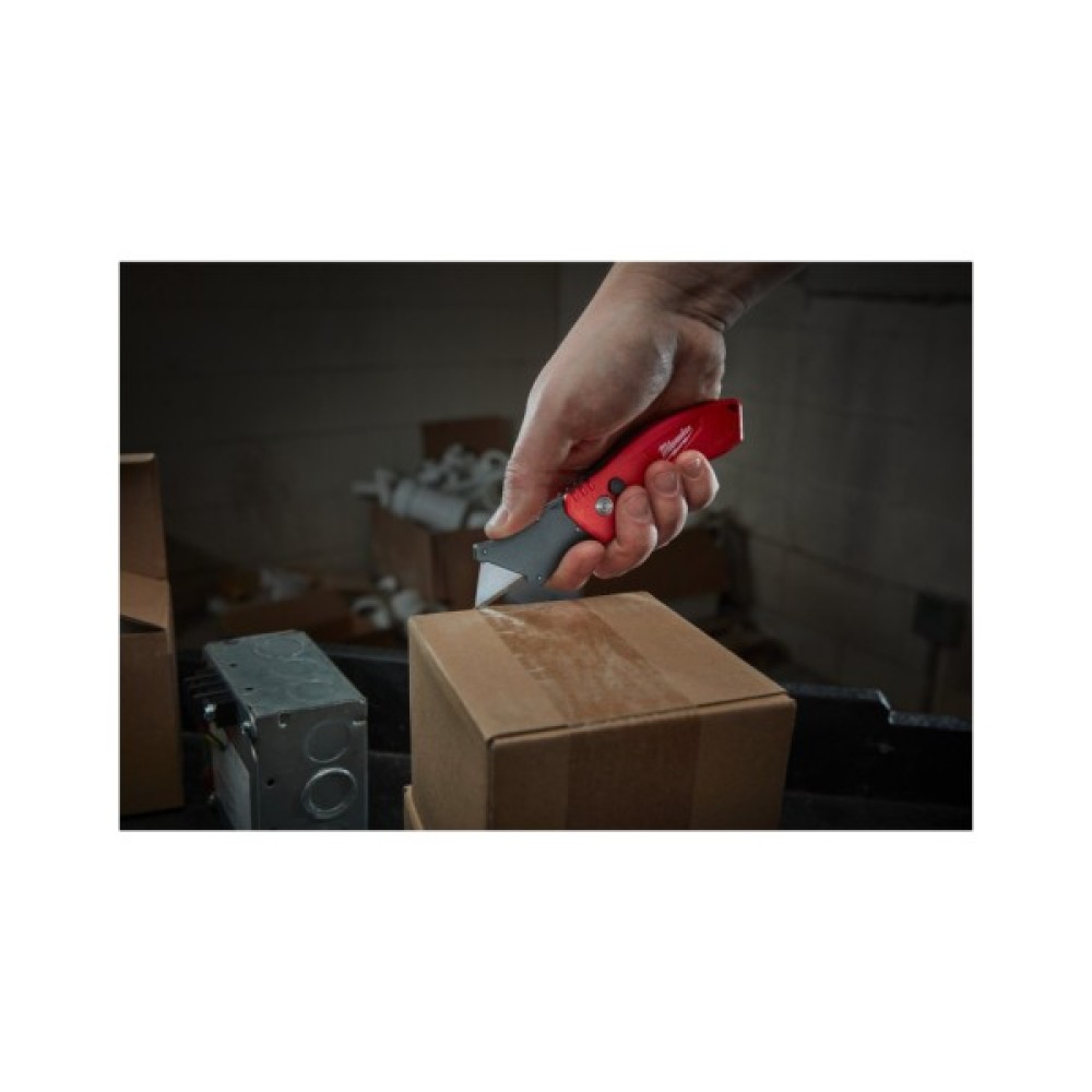 Складний компактний ніж Milwaukee Fastback має лезо, що відкривається однією рукою. Користувач може однією рукою викидати лезо, що забезпечує легкість підготовки до роботи.