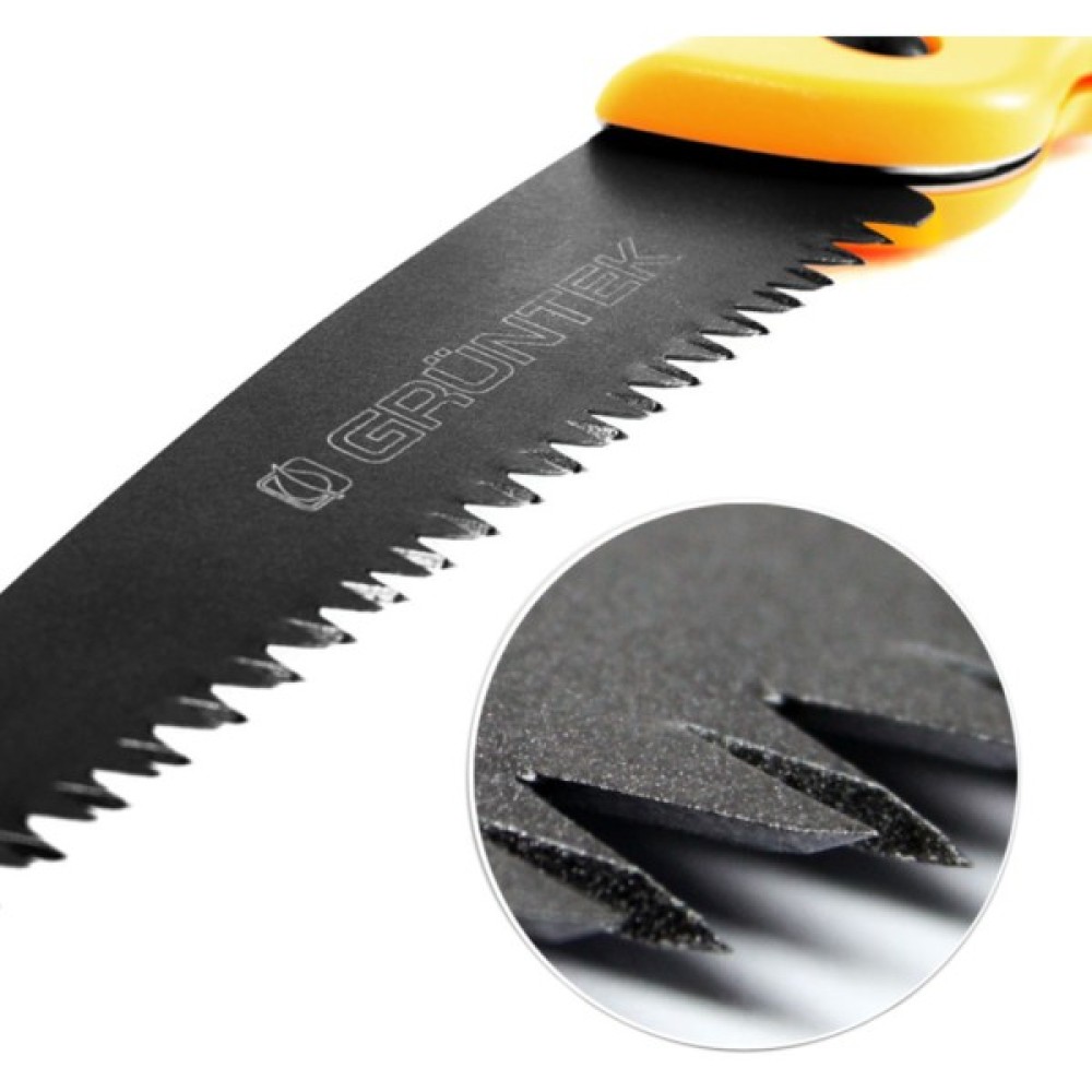 Ручка пили Gruntek Zander зручно лежить у руці та не ковзає в процесі роботи. У закритому вигляді пила завдовжки всього 225 мм, завдяки чому її легко зберігати в інструментальній сумці для різних робіт. Gruntek Zander 180 мм — зручна садова пила для роботи на дачній ділянці, у майстерні, на присадибній території.