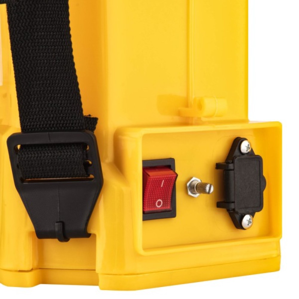 Ємна батареяОбприскувач оснащений свинцево-кислотною батареєю - заряду цілком достатньо, щоб безперервно працювати 4 год. При цьому пристрій заряджається за 8 год, тому оптимальним рішенням є відновлення заряду впродовж ночі, а наступного дня можна знову братися до роботи. Також конструкцією передбачено вбудований вольтметр.