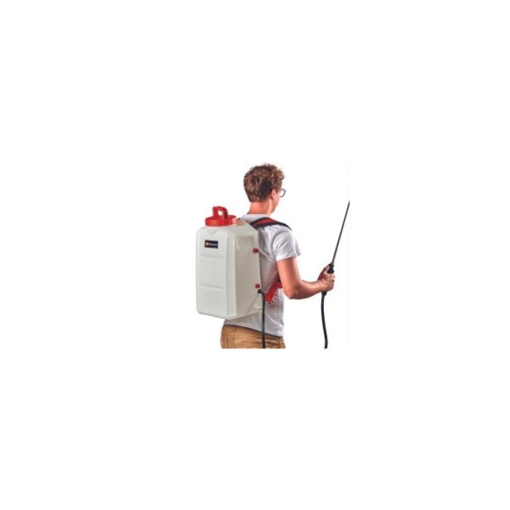 Широкий заливний отвір полегшує роботу заповнення бака. Латунна насадка для розпилення регулюється індивідуально. Телескопічний розпилювач виготовлений із неіржавкої сталі й обладнаний кнопкою керування, може фіксуватися. М'які ремінці для перенесення знімають напруження й полегшують використання обприскувача. Задня кришка забезпечує захист від бризок води. Постачається без акумулятора та зарядного пристрою, які можна придбати окремо.
