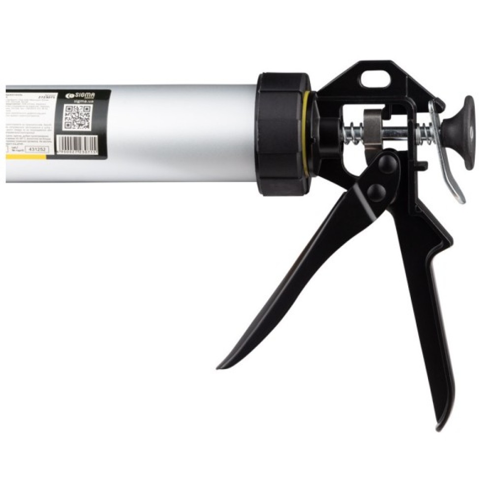 Пістолет для герметиків 375мм 610мл (алюмінієва туба) SIGMA (2723071) застосовується для видавлювання герметика при ізоляції, фіксації та заповнення пустот в роботах по монтажу ванн, раковин, плінтусів, вікон, дверей, дзеркал, плитки і т.д.