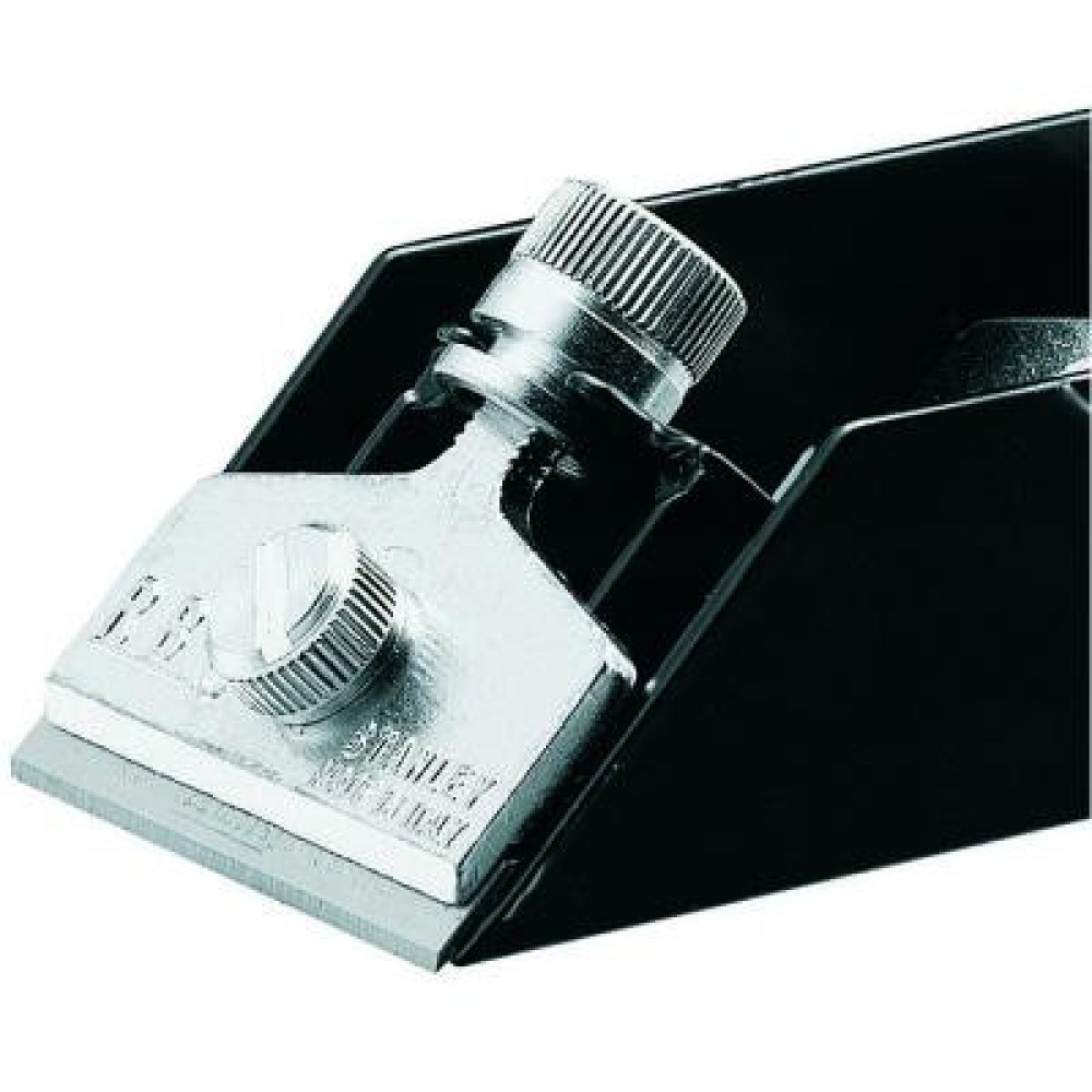 Торцевий рубанок Stanley RB5 (0-12-105) оснащений змінними ножами "RB5" і відфрезерований з високою точністю, завдяки чому забезпечується максимальна стабільність ножа. Він використовується для виконання якісної обробки твердих порід різної деревини в будівельних, ремонтних та обробних роботах, при виробництві меблів, коли потрібно вирівняти дерев'яну площину, або здійснити зменшення товщини дерев'яних деталей.Основним призначенням інструменту є допомога при роботі по наданню різних поверхонь дерев'яних деталей відповідної шорсткості, прямолінійності, площині, форми, зменшення розмірів деталей, і для створення в деталях протяжних виїмок різної форми.Рубанок поставляється з 2-ма гострими лезами RB108. Його запасні леза можна безпечно зберігати в рукоятці.Завдяки властивості регулювання глибини стругання забезпечується продуктивна робота з інструментом.
