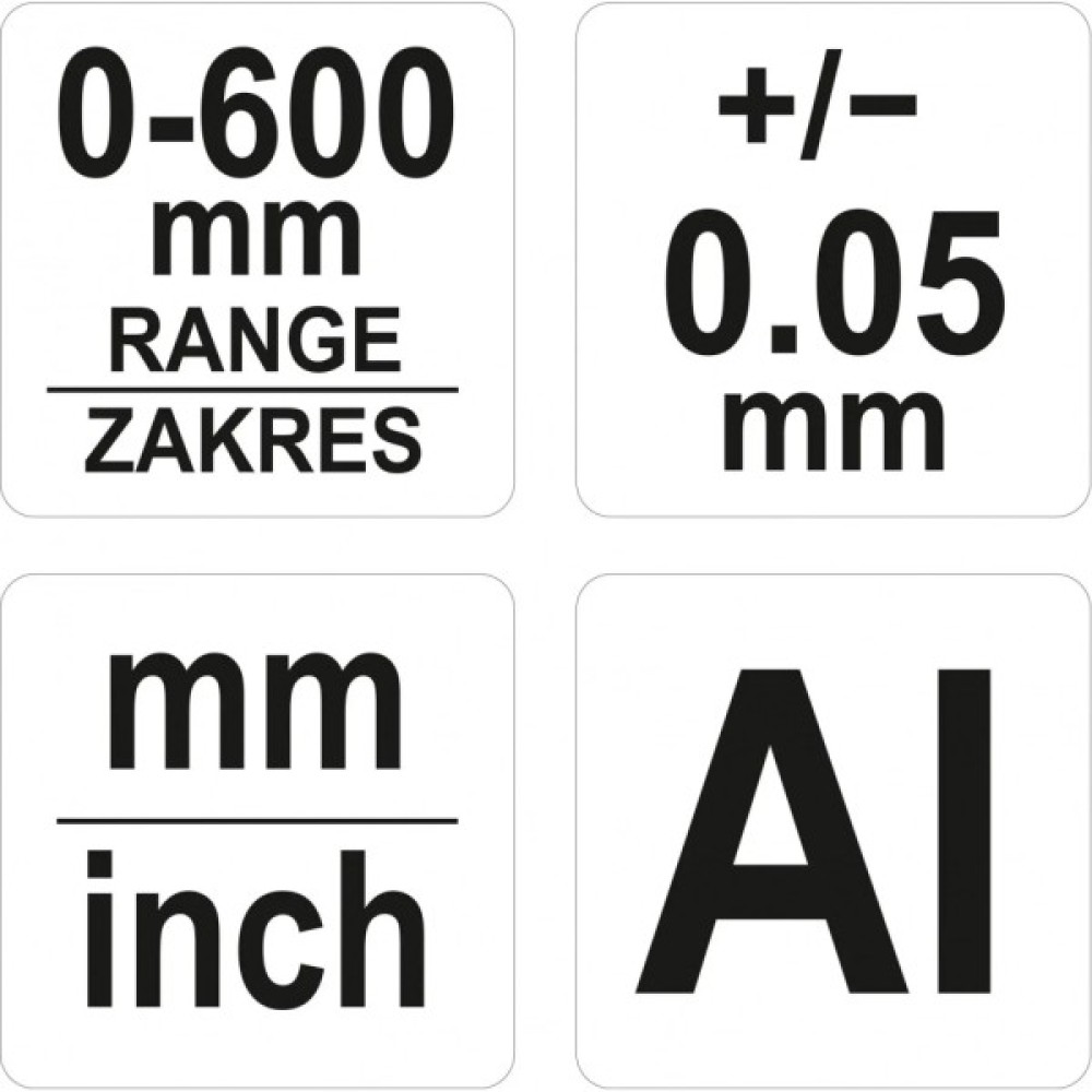 - Нониусна шкала: 1/128" і 0,05 мм.