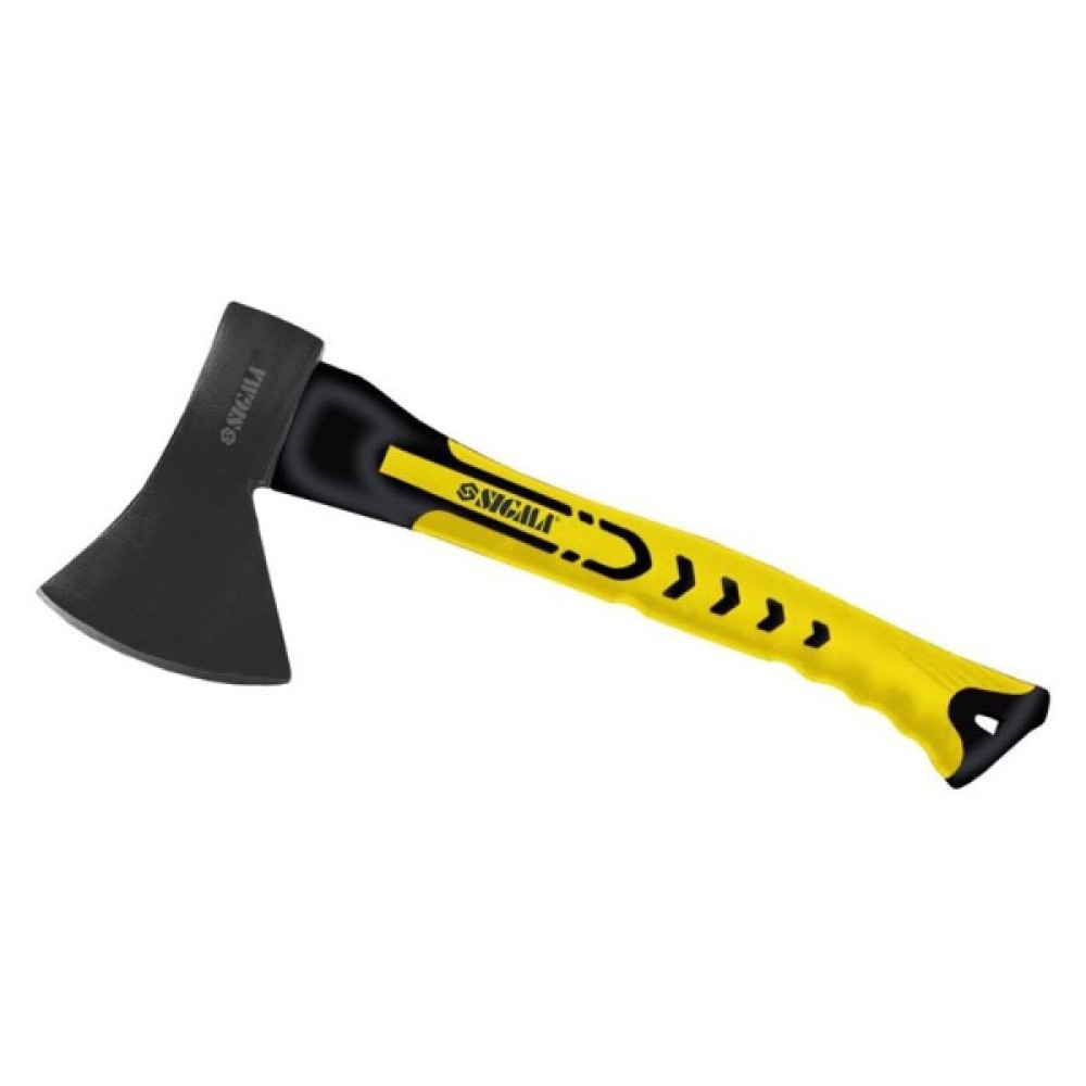 Сокира 600г фібергласова ручка SIGMA (4321061) призначений для рубки, тески і розколювання деревини різних порід і викований з високоякісної інструментальної сталі і загартований, що забезпечує високу зносостійкість ріжучої кромки. Має міцну ручку зі скловолокна з гумовим покриттям проти ковзання, яке не гниє, не всихає, гасить вібрації, стійке до дії масел, бензину і розчинників.