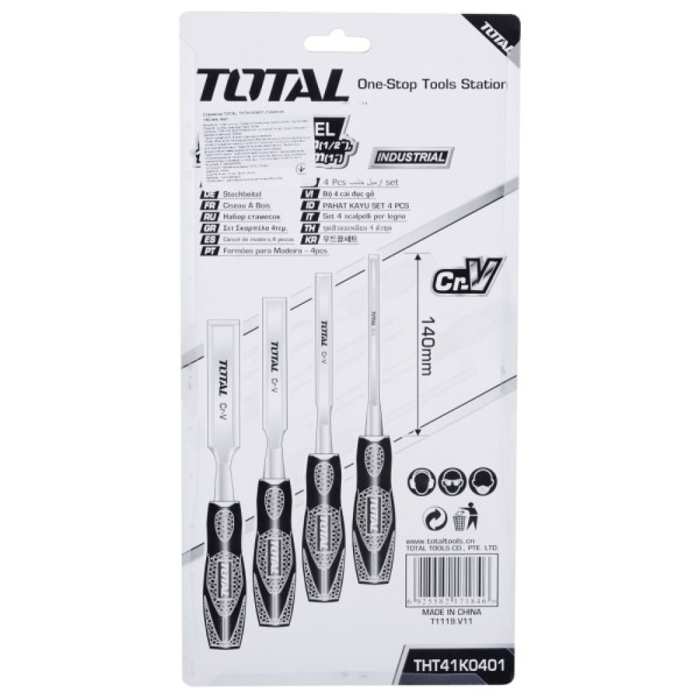 Набір стамесок Total THT41K0401 виготовлений із високоякісної Cr-V сталі з антикорозійним покриттям. Зручні ергономічні рукоятки з термопластичної гуми.