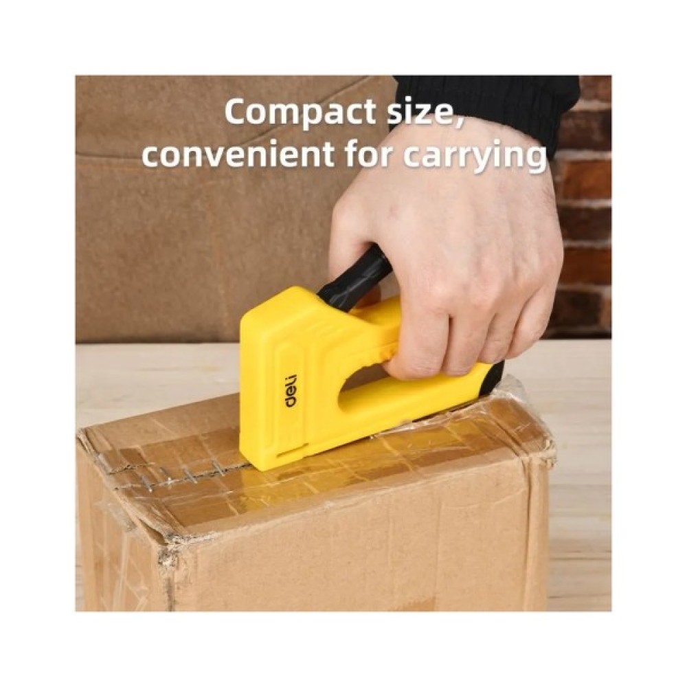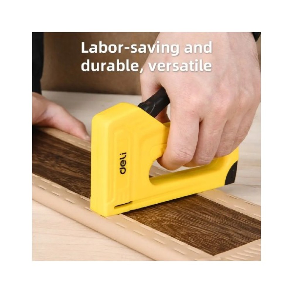 Якщо вам потрібен зручний і надійний степлер для дому чи майстерні — ця модель стане чудовим вибором. Плавна робота без заклинювань, регульована сила удару під різні матеріали. Підходять стандартні скоби довжиною 4–10 мм, а бічна шкала допомагає точно позиціонувати. Корпус витримує понад 10 000 пострілів. Упакований у подвійний блістер — зручно для транспортування або подарунка.