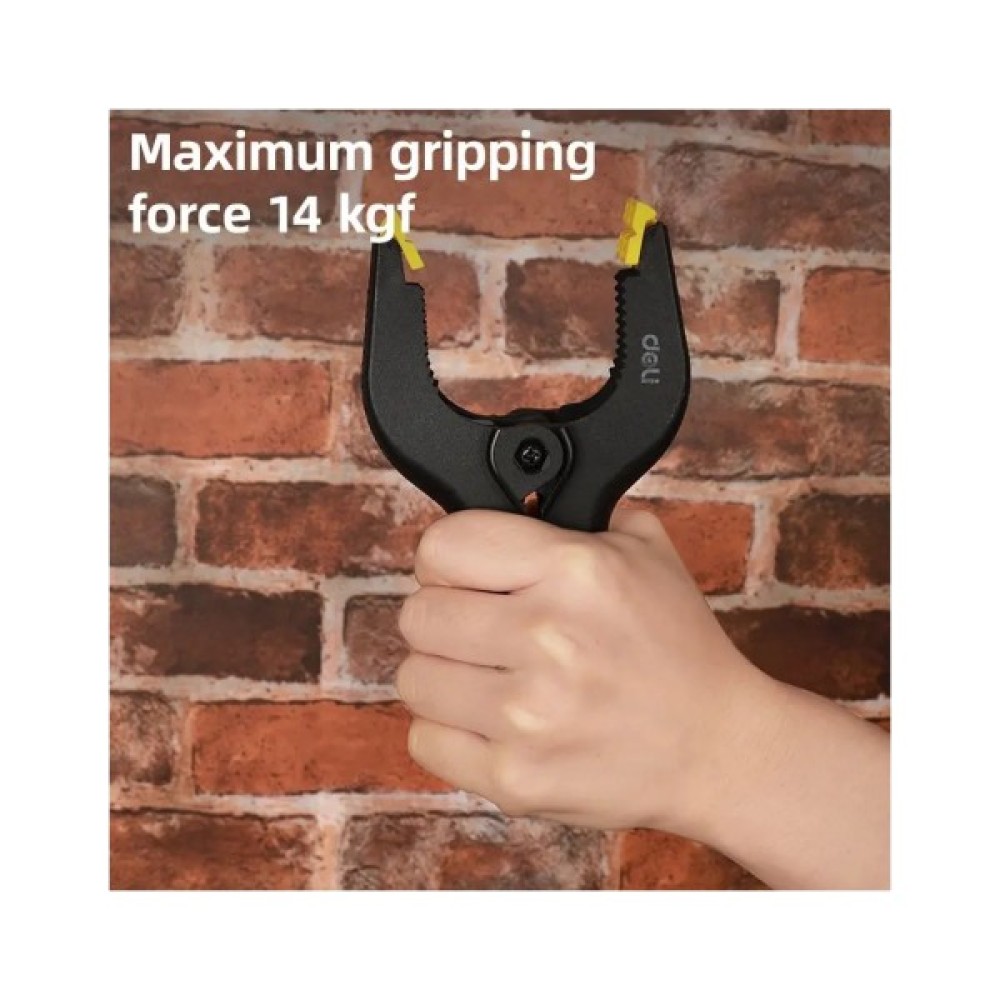 Сила затиску 14 кг забезпечує стабільне утримання без ковзання, а міцний корпус додає інструменту професійного вигляду та підвищеної витривалості. Ергономічна форма робить затискач зручним у використанні однією рукою. Упакований з етикеткою — компактний, практичний і повністю готовий до роботи.