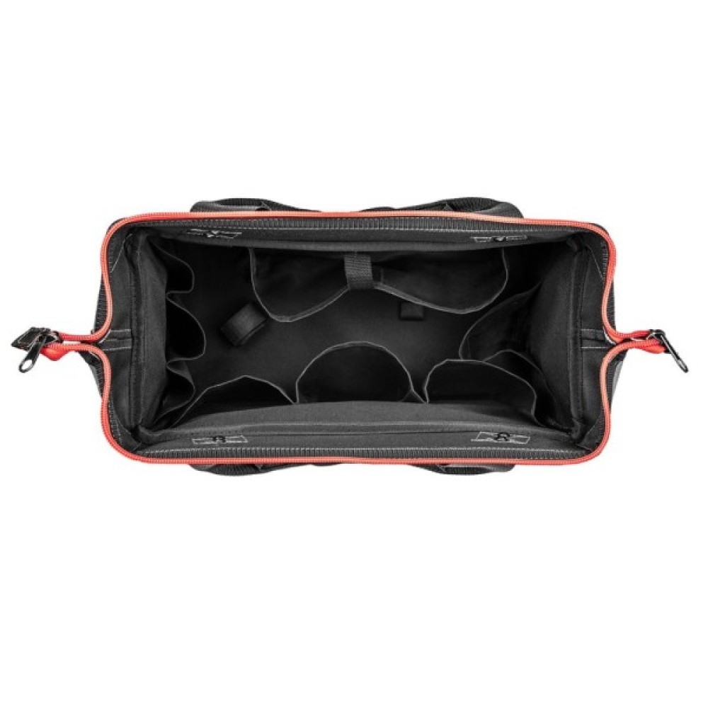 Середня сумка для електроінструментів Energy + GRAPHITE, місткість 18,5 л, виготовлена з поліестеру. Сумка оснащена 8 внутрішніми кишенями, 2 внутрішніми петлями для інструментів і 7 зовнішніми кишенями, що дозволяє організувати ваші інструменти і їх безпечне транспортування.