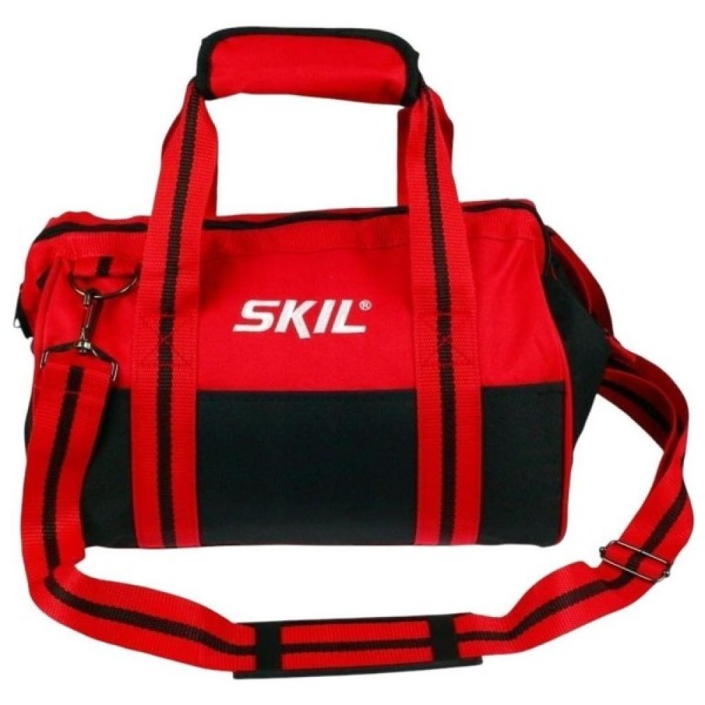 Професійна сумка для інструментів SKIL 2610S00864 виготовлена з дуже міцної, стійкої до пошкоджень та водонепроникної тканини. Зовнішня частина сумки має 2 великі бічні кишені та 4 невеликі бічні кишені, а також 2 транспортувальні ручки (вушка), закріплені на липучках для зручності транспортування. Також є регульований плечовий ремінь з ручками для зручного транспортування.