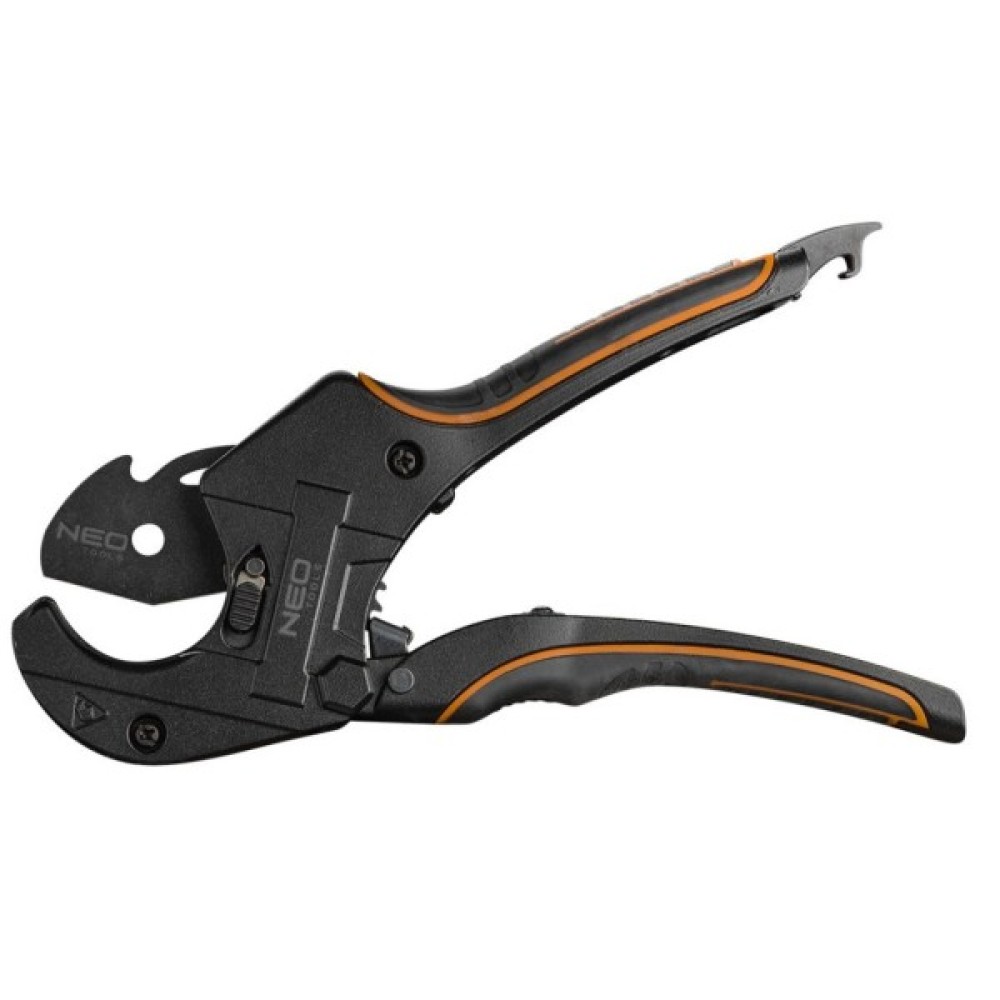 NEO пластиковий труборіз для професійного різання труб. Високоякісний гострий клинок забезпечує легкість роботи. Можливість зміни леза дозволяє багаторічну експлуатацію інструменту. Доступні змінні леза. Характеристики продукту: для труб PP, PVC, PE, алюмінієвий корпус, гумова ручка TPR, храповий механізм, лезо з тефлоновим покриттям, змінні леза, діапазон: 0-42 мм.