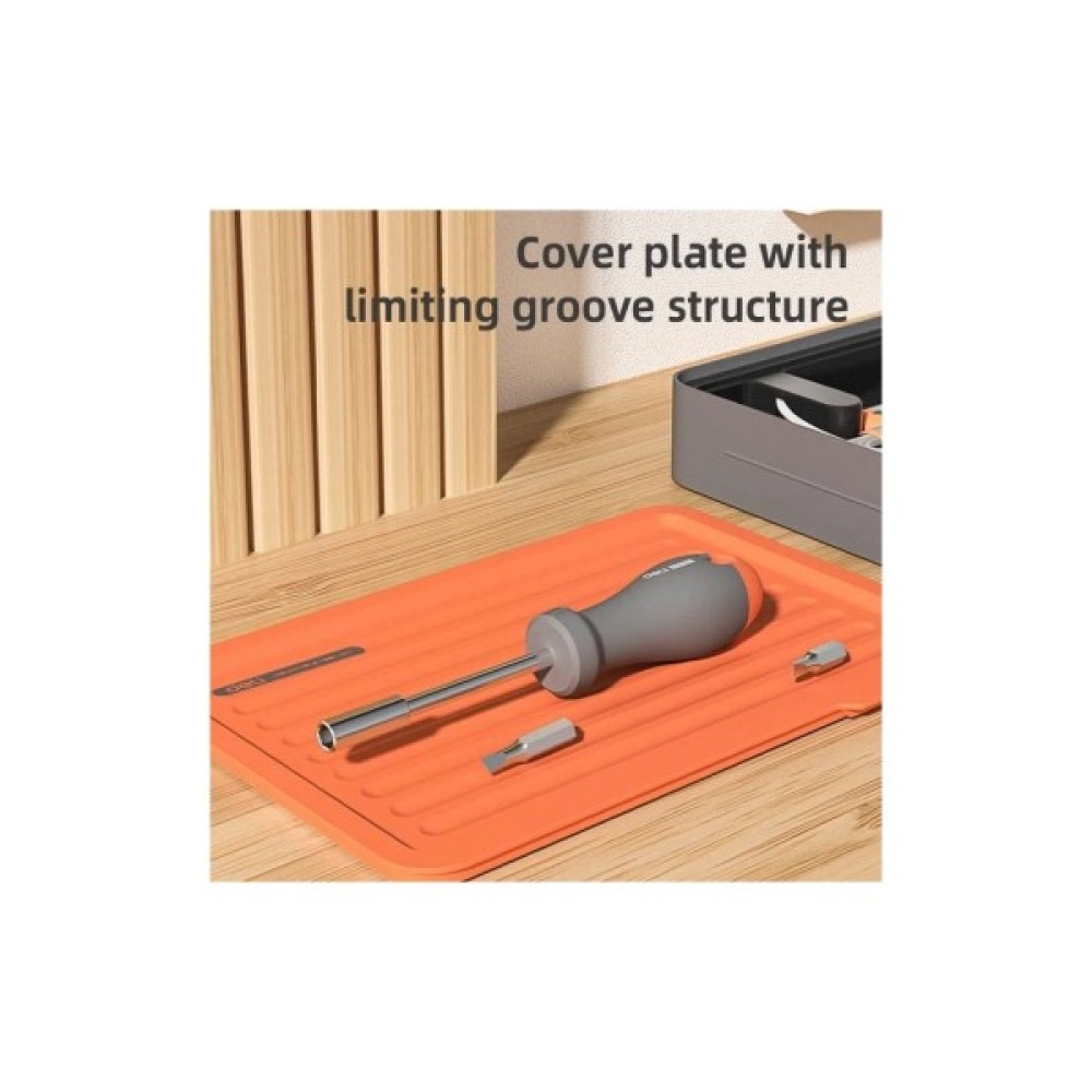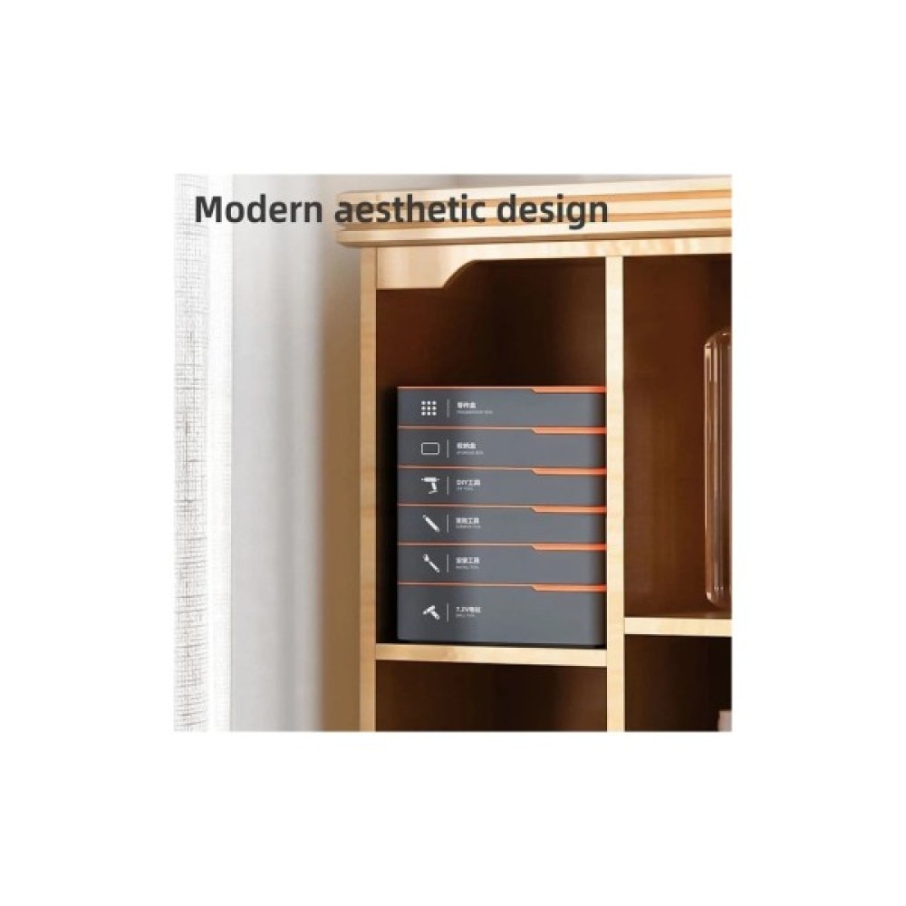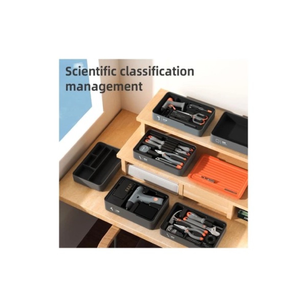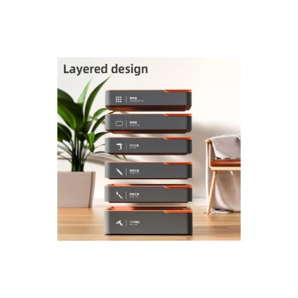 Стильний багатошаровий ящик для зберігання з магнітними кришками — ідеальний для дрібних деталей і аксесуарів. Має запатентований дизайн, гнучке компонування та молодіжну сіро-оранжеву гаму. Упакований у картонну коробку.