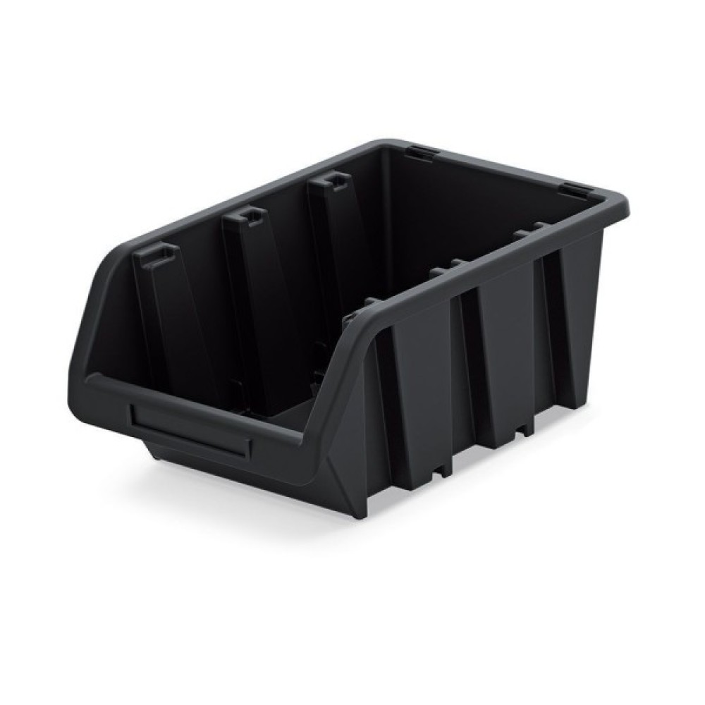 Ємність для зберігання має корпус, виготовлений із міцної полімерної суміші, чорного кольору.