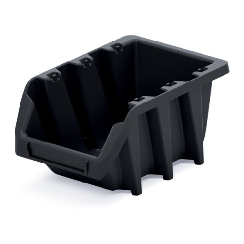 Ємність для зберігання має корпус, виготовлений із міцної полімерної суміші, чорного кольору.