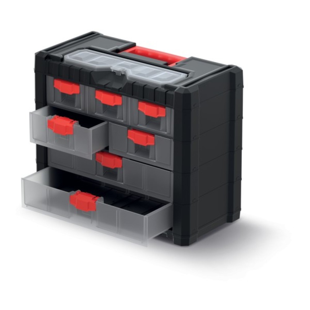 Система Multicase Cargo 400 х 200 х 326 мм була розроблена для зберігання великої кількості дрібних деталей в одному місці. Продукт оснащений практичною ручкою для зручності перенесення та прозорими висувними ящиками трьох розмірів.
