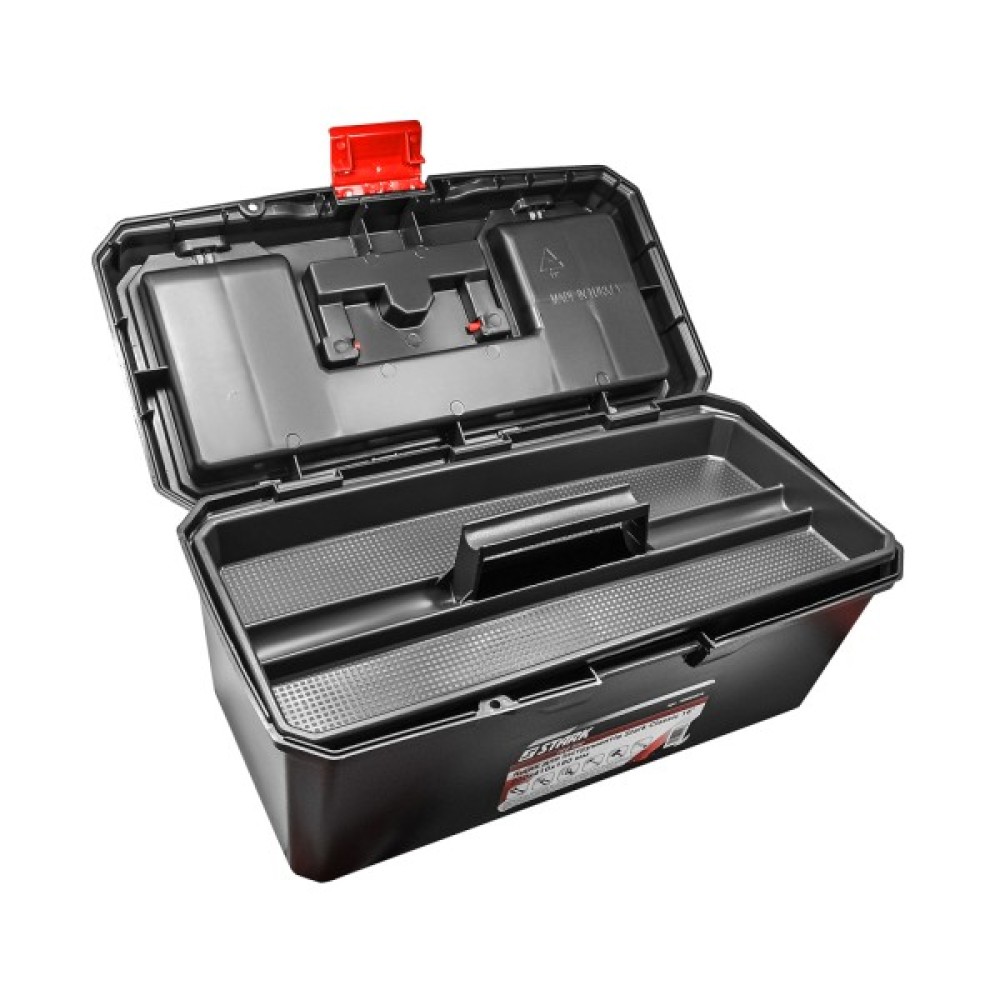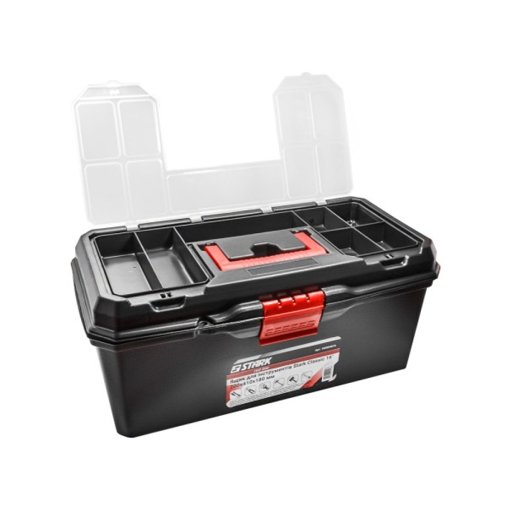 Ящики для інструменту Stark Classic — універсальний кейс із пластиковими застібками. На кришці розміщений зручний органайзер для зберігання металевих виробів, дюбелів, дрібних будівельних і побутових елементів. Ідеально підійде для організації інструменту вдома, на дачі, у гаражі.