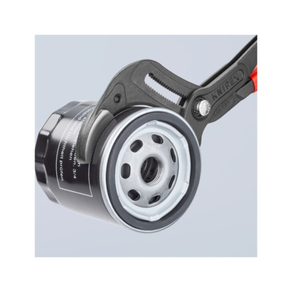 Завдяки 25 можливим налаштуванням, які можна зручно встановити на потрібну ширину захоплення за допомогою кнопки точного регулювання, кліщі Knipex для сифонів і з’єднувачів мають великий діапазон захоплення Ø 25 - 80 мм. Завдяки конструкції муфтового з’єднання та виготовленню із загартованої в маслі хромованадієвої електросталі кліщі дуже міцні.
