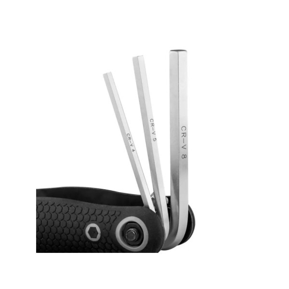 Виготовлені з хром-ванадієвої сталі, ці складані шестигранні ключі забезпечують відмінну міцність і зносостійкість. Кінці ключів загартовані, що забезпечує довговічність навіть при інтенсивному використанні. Інструмент оснащений складаною ручкою, яка витримує часте складання та розкладання без шкоди для функціональності. Ця ергономічна ручка виготовлена з якісного ABS пластику, що забезпечує зручне та надійне захоплення під час використання. Крім того, кінці шестигранників мають квадратний зріз, що забезпечує надійну посадку на повну глибину і максимальний контакт з гвинтом, запобігаючи вислизанню і розхитуванню гвинта.