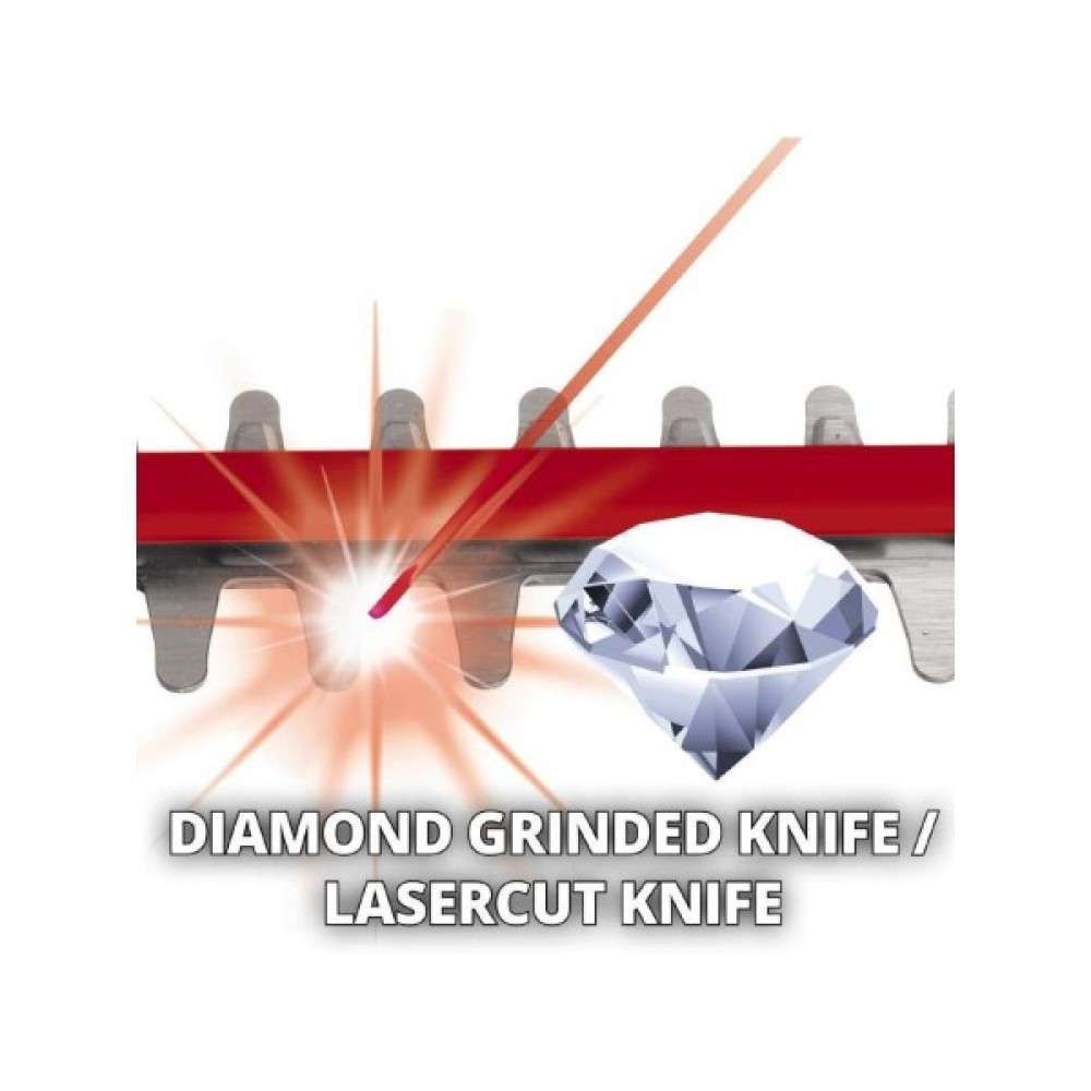 Задню ручку акумуляторного кущоріза можна повертати - це забезпечує максимальну гнучкість під час роботи та безпечне поводження з інструментом. Вузька передня ручка оснащена мікровимикачем: тример для живоплоту автоматично зупиняється, коли ваші руки більше не лежать на ручці.