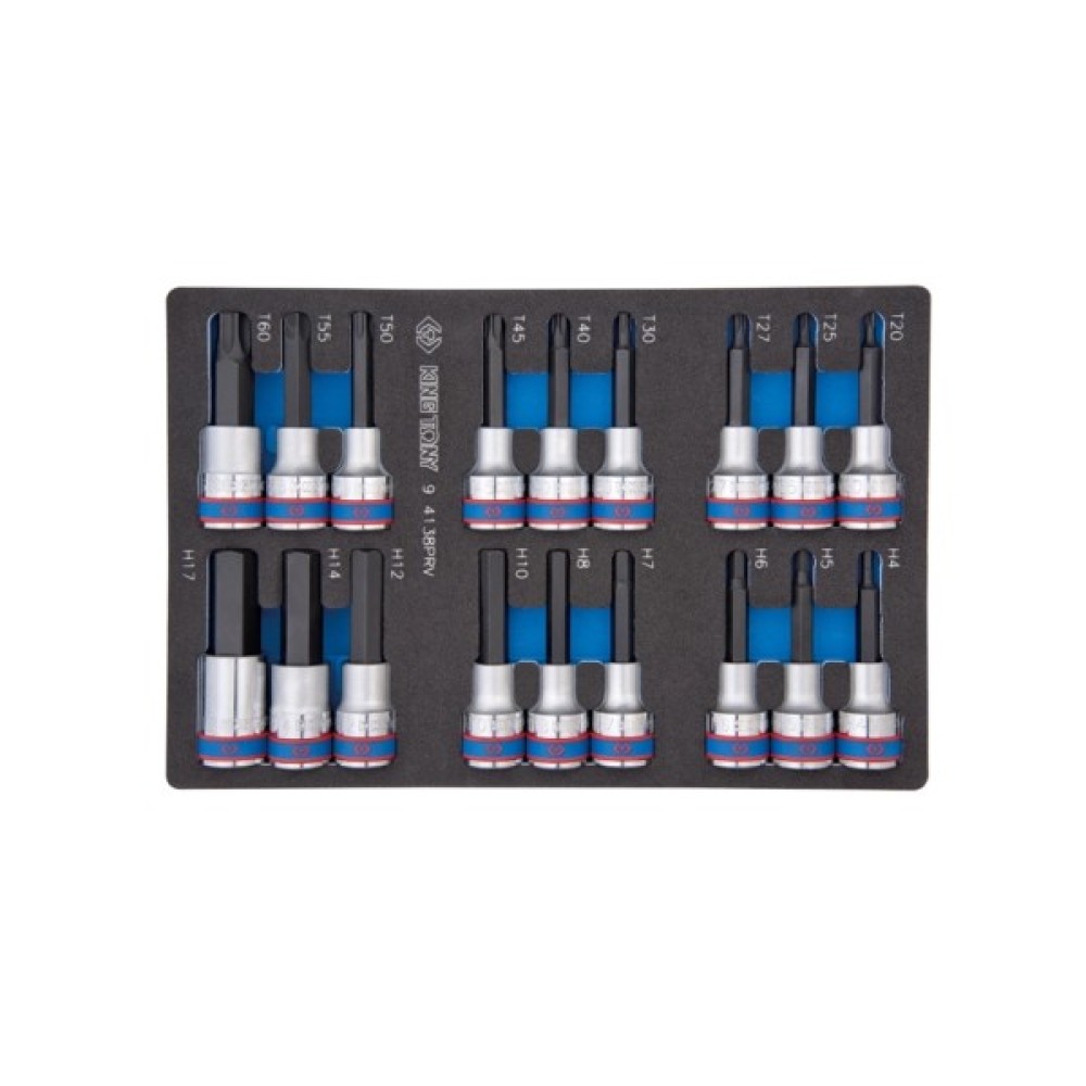 Набір торцевих головок KING TONY торцевих головок 1/2", TORX, HEX, L = 80 мм, в ложемент, 18 шт. (9-4138PRV)