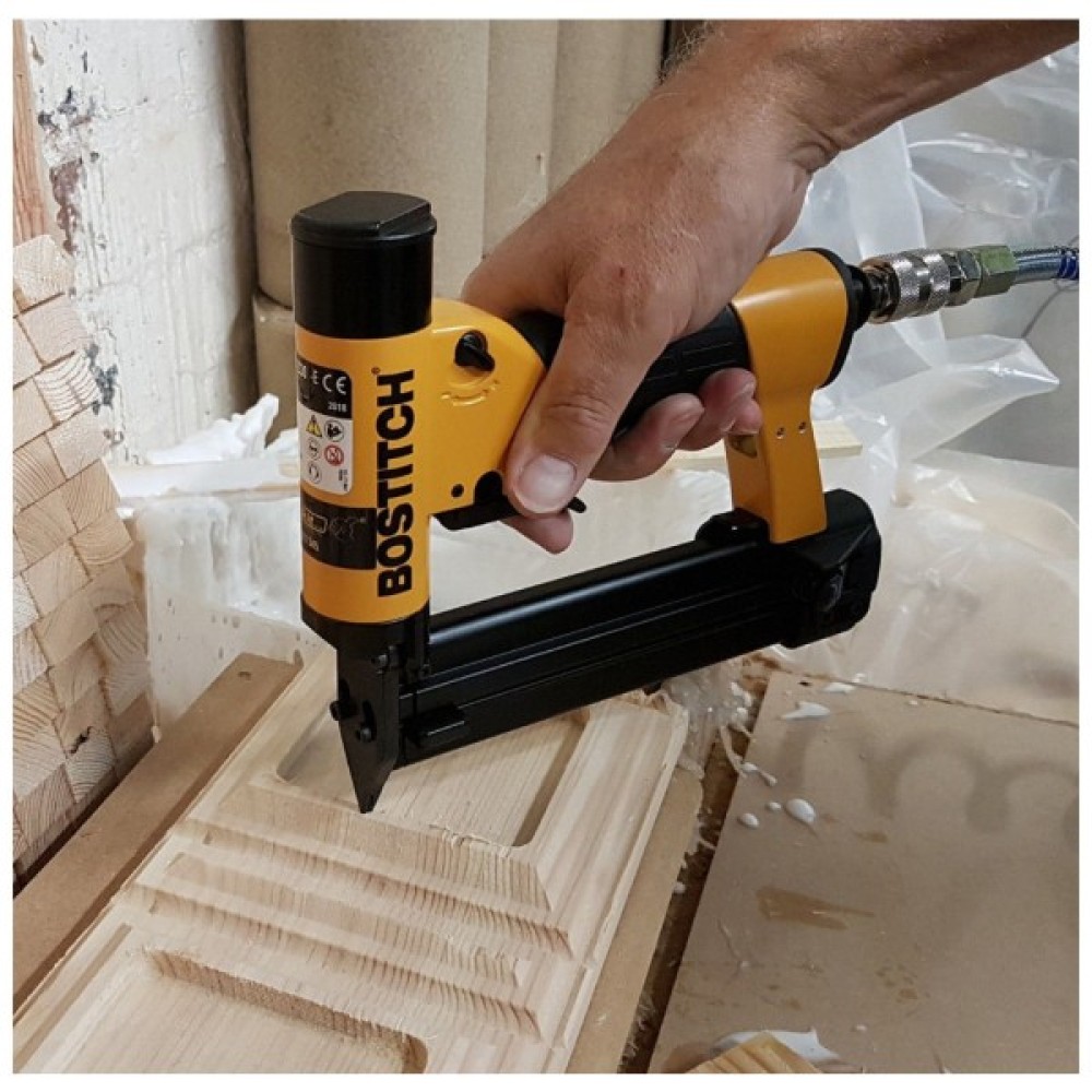 Пневматичний шпилькозабивий інструмент Bostitch TU-216-2330K-E являє собою обладнання, що застосовує енергію стисненого повітря для забивання шпильок (штифтів), певних типів та довжин без участі людської сили. Інструмент призначений для професійного використання у виробничих комерційних цілях, а саме: для кріплення штапиків, накладок, молдингів, лиштви, фіксації заставних. Основна його перевага — мікрошпилька: непомітність у виробі, оскільки шпилька залишає дуже маленький, практично непомітний слід. Легкий алюмінієвий корпус. Додатковий гачок запобіжника. Регулювання сили забивання. Заряджання магазину збоку. Подвійна пускова клавіша вистрілу (для захисту від довільного пострілу).