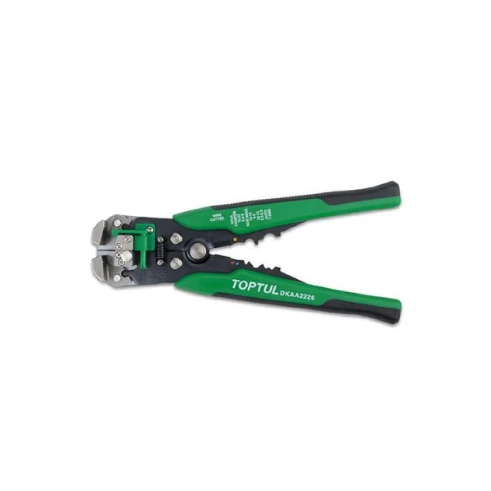 Кліщі для обтиску клем і зняття ізоляції посилені TOPTUL DKAA2226 - популярна модель кліщів для зачистки дротів. Оснащені двома парами губок з лезами та виступами для обтиску накінечників і клем.