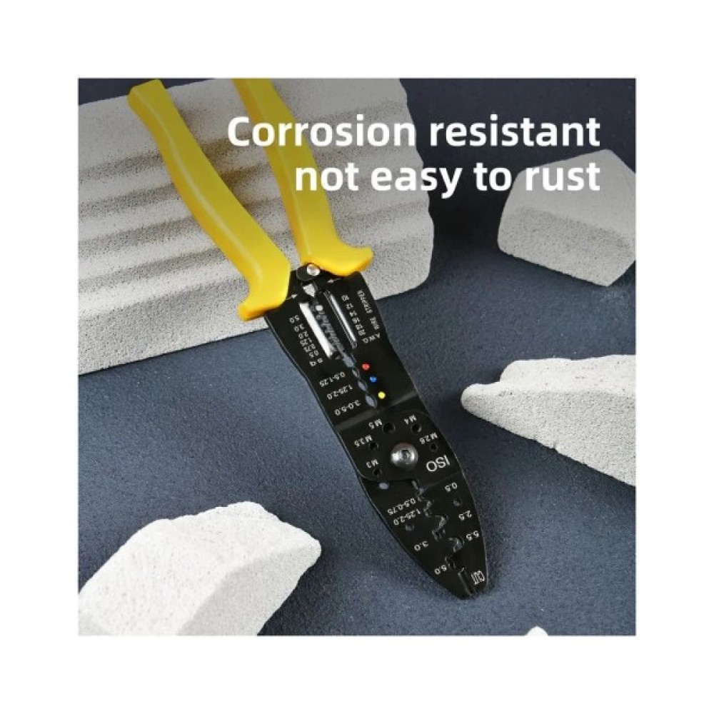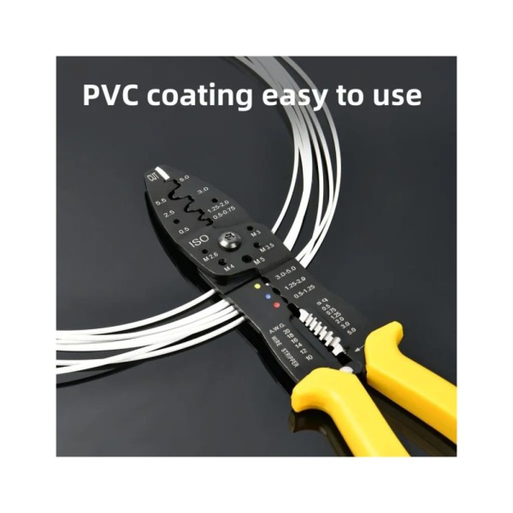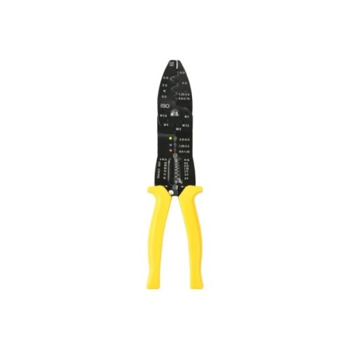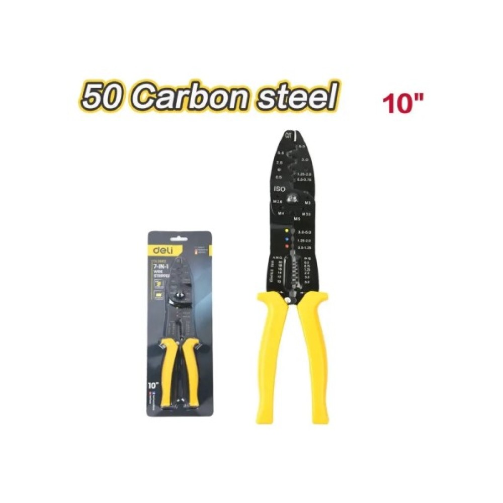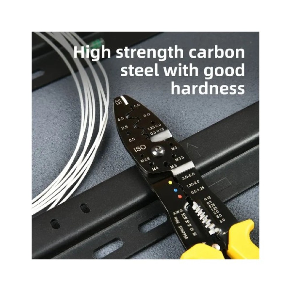 Цей 7-в-1 стрипер із міцної вуглецевої сталі виконує зачистку, обрізання, обтискання та інші функції. Ручки з ПВХ-покриттям зручні в роботі, а антикорозійне покриття забезпечує довговічність. Упакований у блістер — зручно для зберігання або кріплення в майстерні.