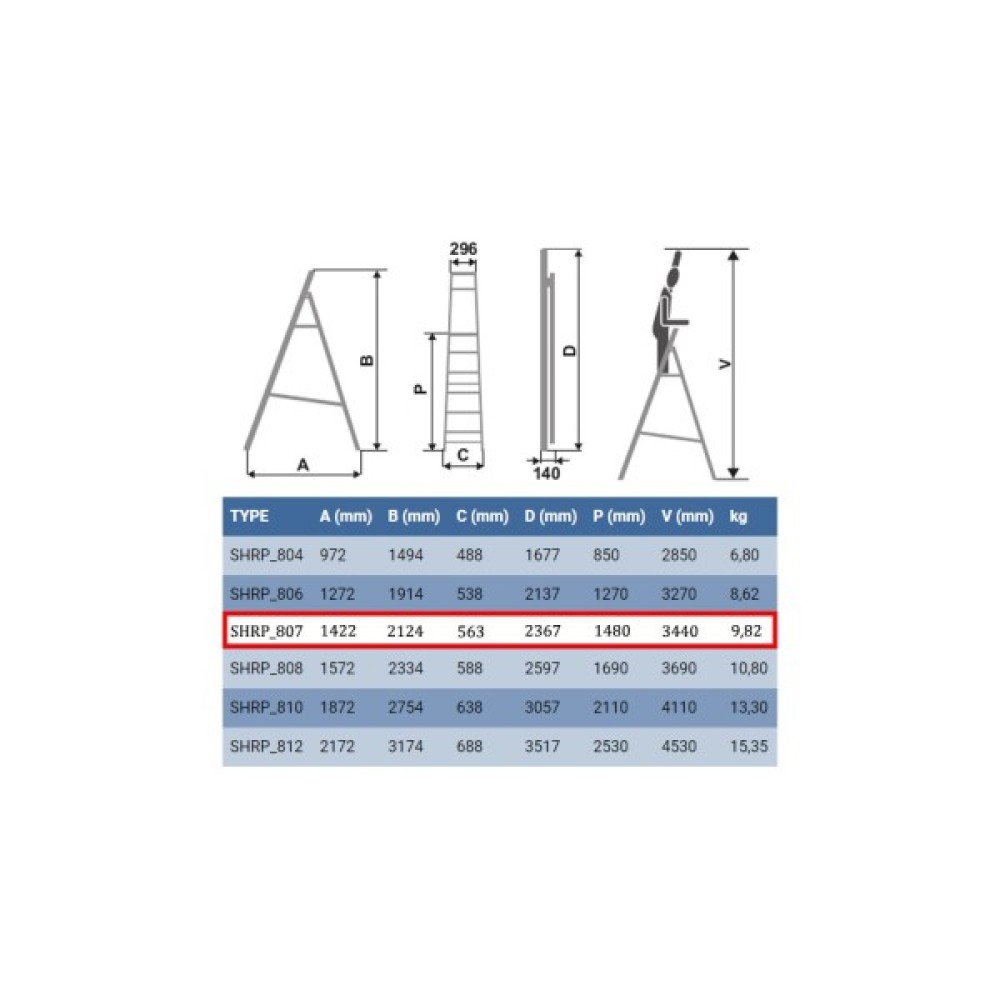 Стрем'янка Elkop SHRP 807 - одностороння алюмінієва драбина для активного використання для будівельних і ремонтних робіт. Завдяки антиковзаючим полімерним опорам може використовуватися як на вулиці, так і в приміщенні. Стрем'янки цієї серії мають більш міцну секцію з ребристими ступенями.
