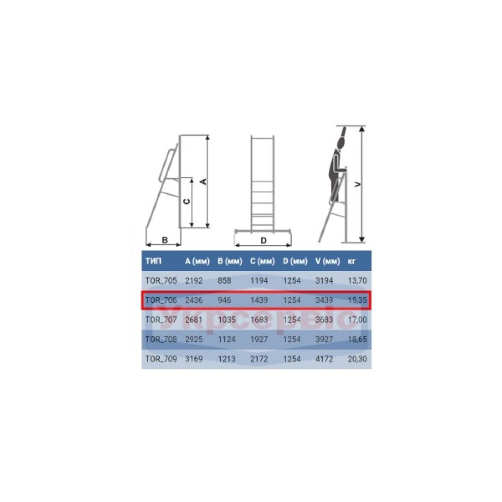 cтремянка-помост 6сх. верхя сходинка-1,4м