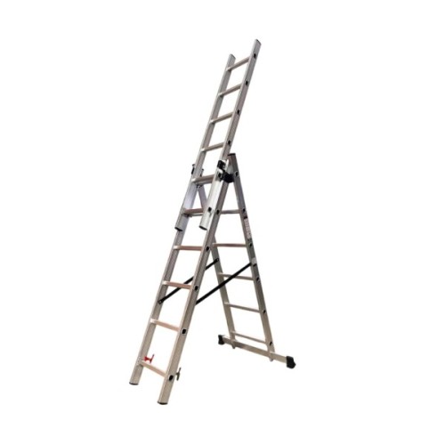 Трисекційна драбина GTM KME306 – це ідеальне рішення для будь-яких робіт на висоті. Завдяки універсальній конструкції їх можна використовувати як приставну, висувну драбину або стрем’янку. Посилений алюмінієвий профіль забезпечує легкість транспортування, довговічність та стійкість до корозії.