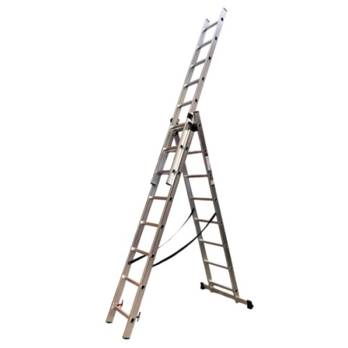 Трисекційна драбина GTM KME308 – це ідеальне рішення для будь-яких робіт на висоті. Завдяки універсальній конструкції їх можна використовувати як приставну, висувну драбину або стрем’янку. Посилений алюмінієвий профіль забезпечує легкість транспортування, довговічність та стійкість до корозії.