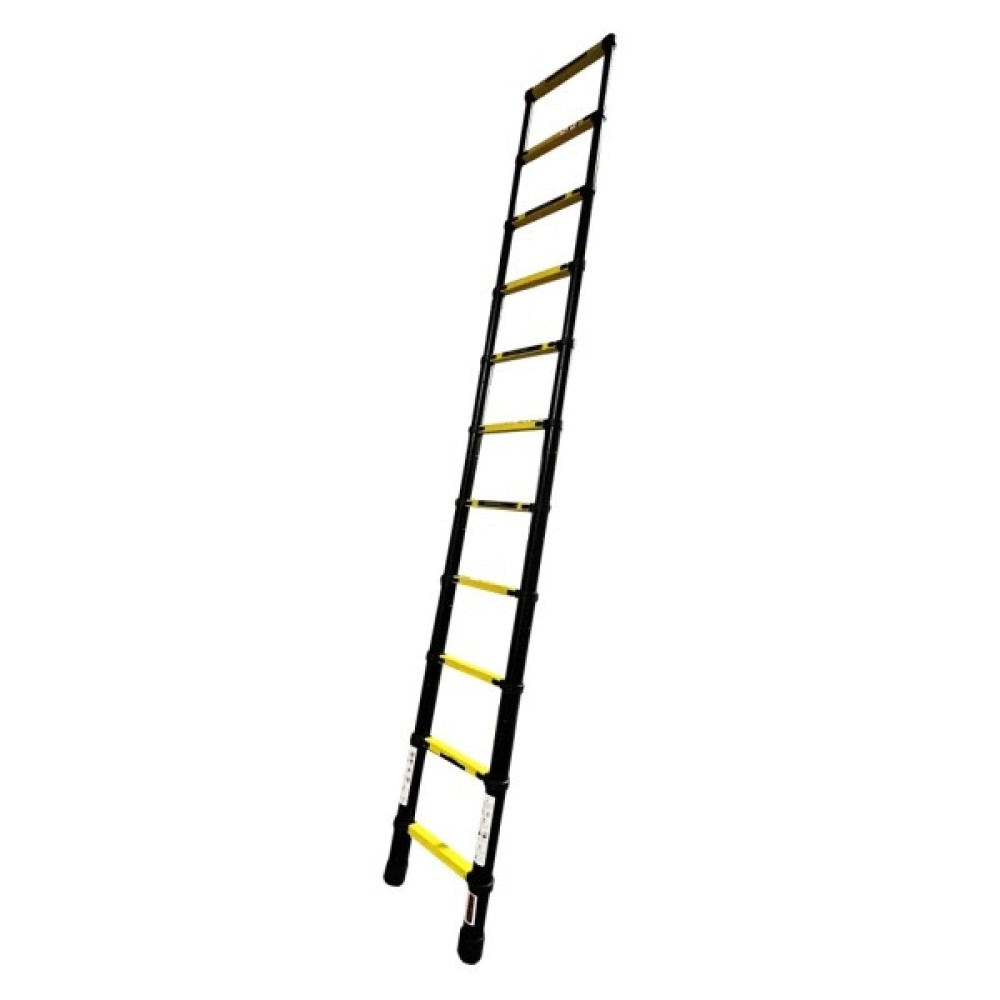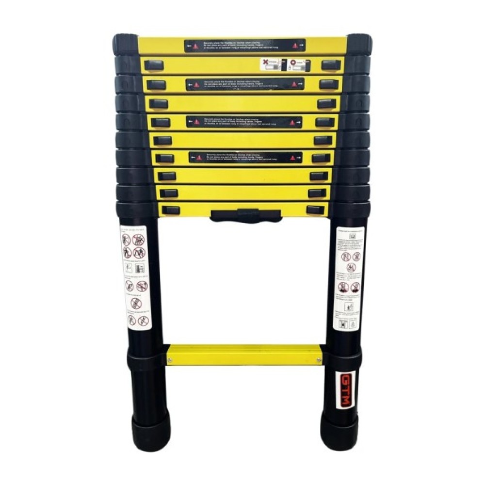 Драбина GTM KME1032Y/881032 - приставна телескопічна алюмінієва драбина на 11 сходинок для побутового та професійного використання. Ця модель не має будь-яких додаткових опор, тому притуляється до стіни або іншої вертикальної поверхні під кутом 65-75° відносно підлоги.