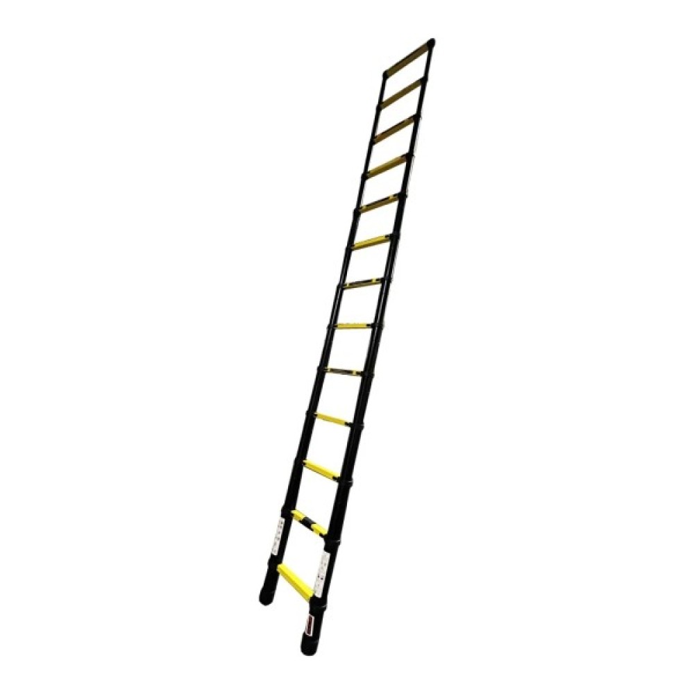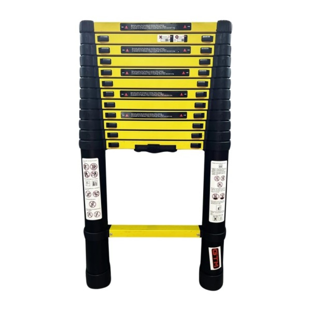 Драбина GTM KME1038Y/881038 - приставна телескопічна алюмінієва драбина на 13 сходинок для побутового та професійного використання. Ця модель не має будь-яких додаткових опор, тому притуляється до стіни або іншої вертикальної поверхні під кутом 65-75° відносно підлоги.
