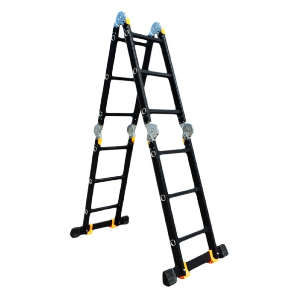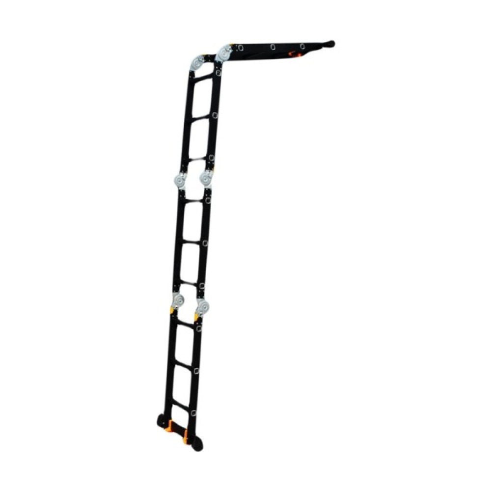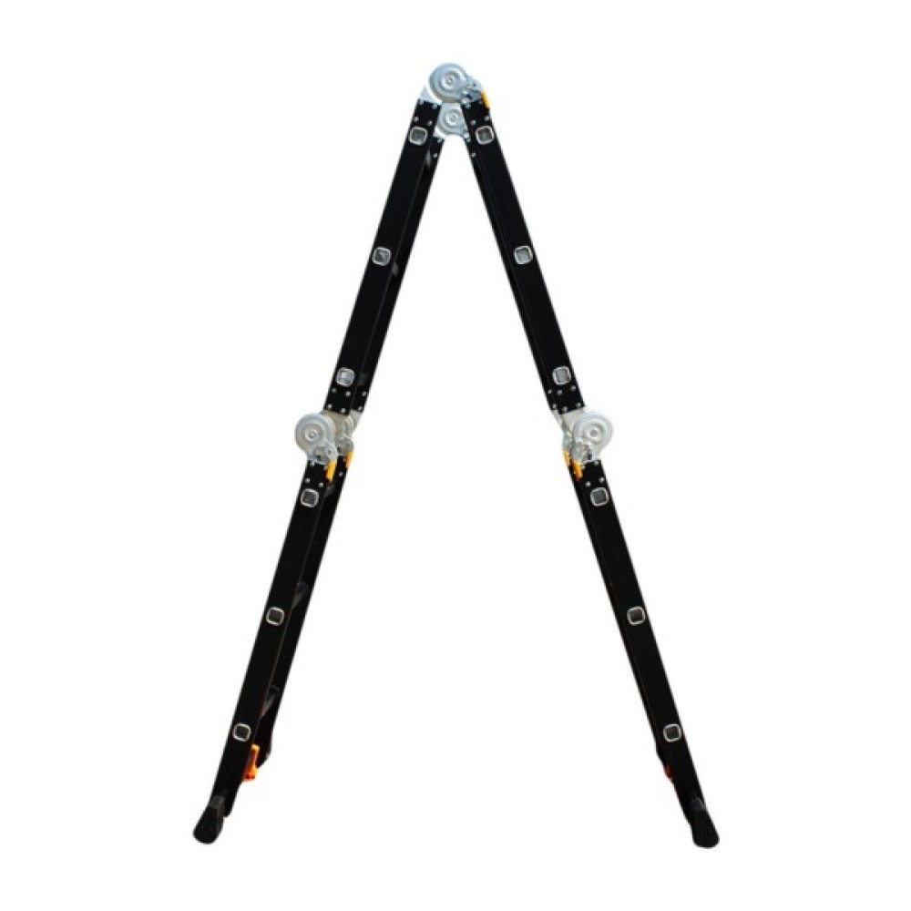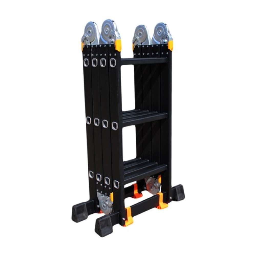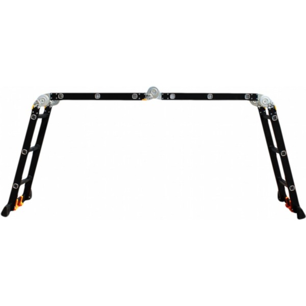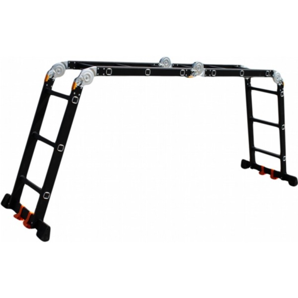 Драбина-трансформер GTM KMP403A — універсальна драбина, яка може виконувати функції драбини або приставної драбини. Алюмінієвий профіль зі збільшеною товщиною стінки (1.2 мм вертикальна і 1.8 горизонтальна), з ребрами жорсткості, фарбований методом електрофорезу, великі посилені замки, збільшена ширина нижньої траверси (на 10 см), збільшена ширина драбини (на 2 см).