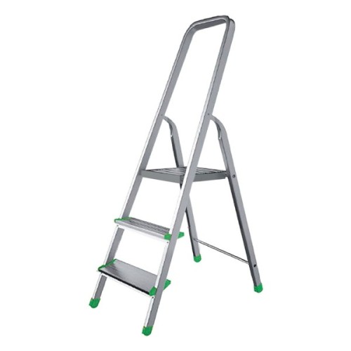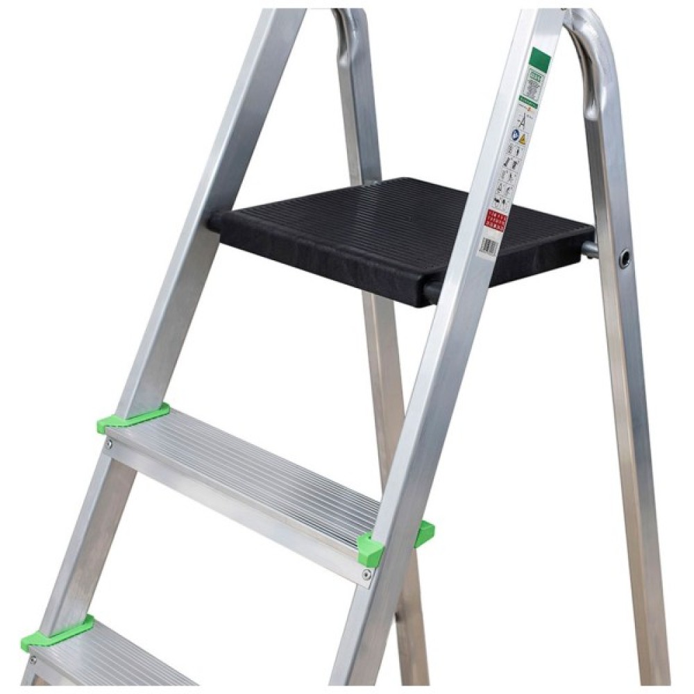 Одностороння підлогова алюмінієва переносна драбина (стрем'янка) для професійного використання, зі стабільною алюмінієвою платформою.