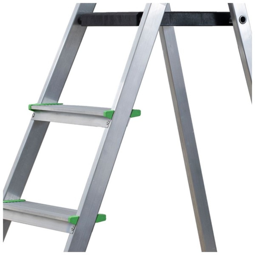 Алюмінієві, профільовані щаблі, з'єднані з боковинами методом фланжування, гарантують безпечне входження і зручність у використанні.