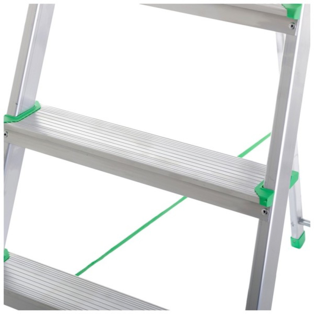 Алюмінієві, профільовані щаблі, з'єднані з боковинами методом фланжування, гарантують безпечне входження і зручність у використанні.