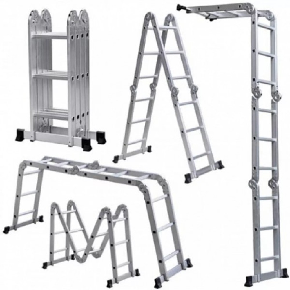 Одна з найбільш унікальних функцій цієї моделі – можливість перетворення в різні робочі позиції завдяки спеціальним шарнірним механізмам. Це дозволяє використовувати драбину не лише як звичайну пряму чи розсувну, але й як платформу або підмостки, розширюючи функціональні можливості. Таким чином, будь-який монтажний чи ремонтний процес стає швидшим та зручнішим.