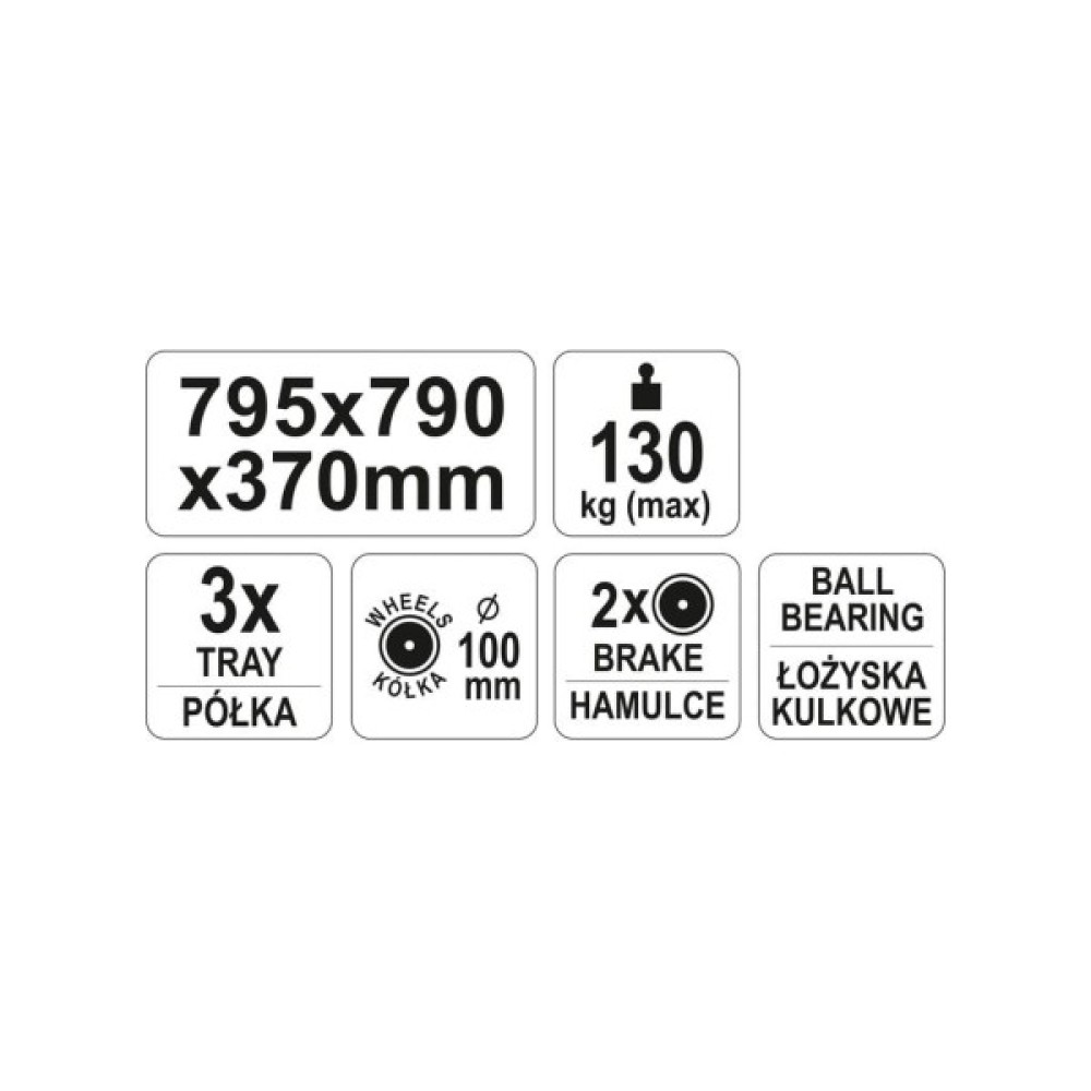 Візок для майстерень триярусний. Практичний трирівневий візок для майстерень вантажопідйомністю 130 кг. Завдяки возику, необхідні інструменти завжди можуть бути під рукою.