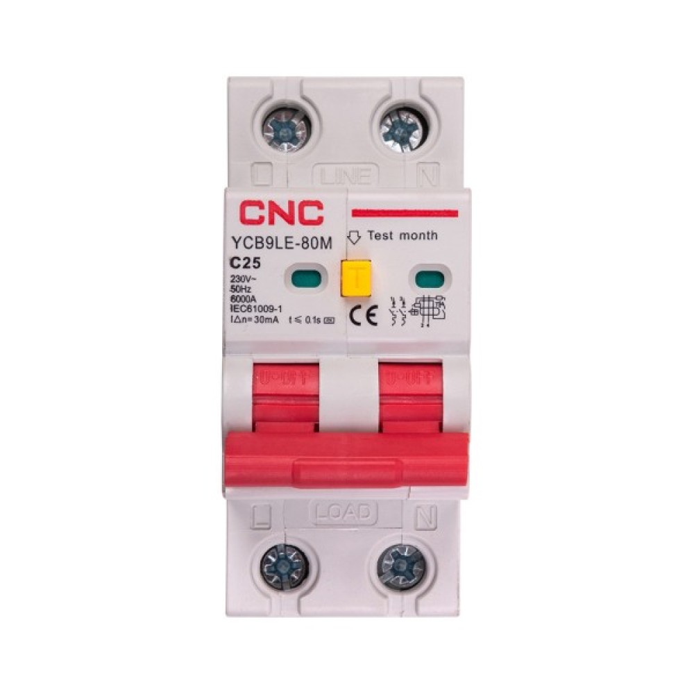 Диференціальний автоматичний вимикач CNC YCB9LE-80M 2P C25 6000A 30mA (NV821891)
