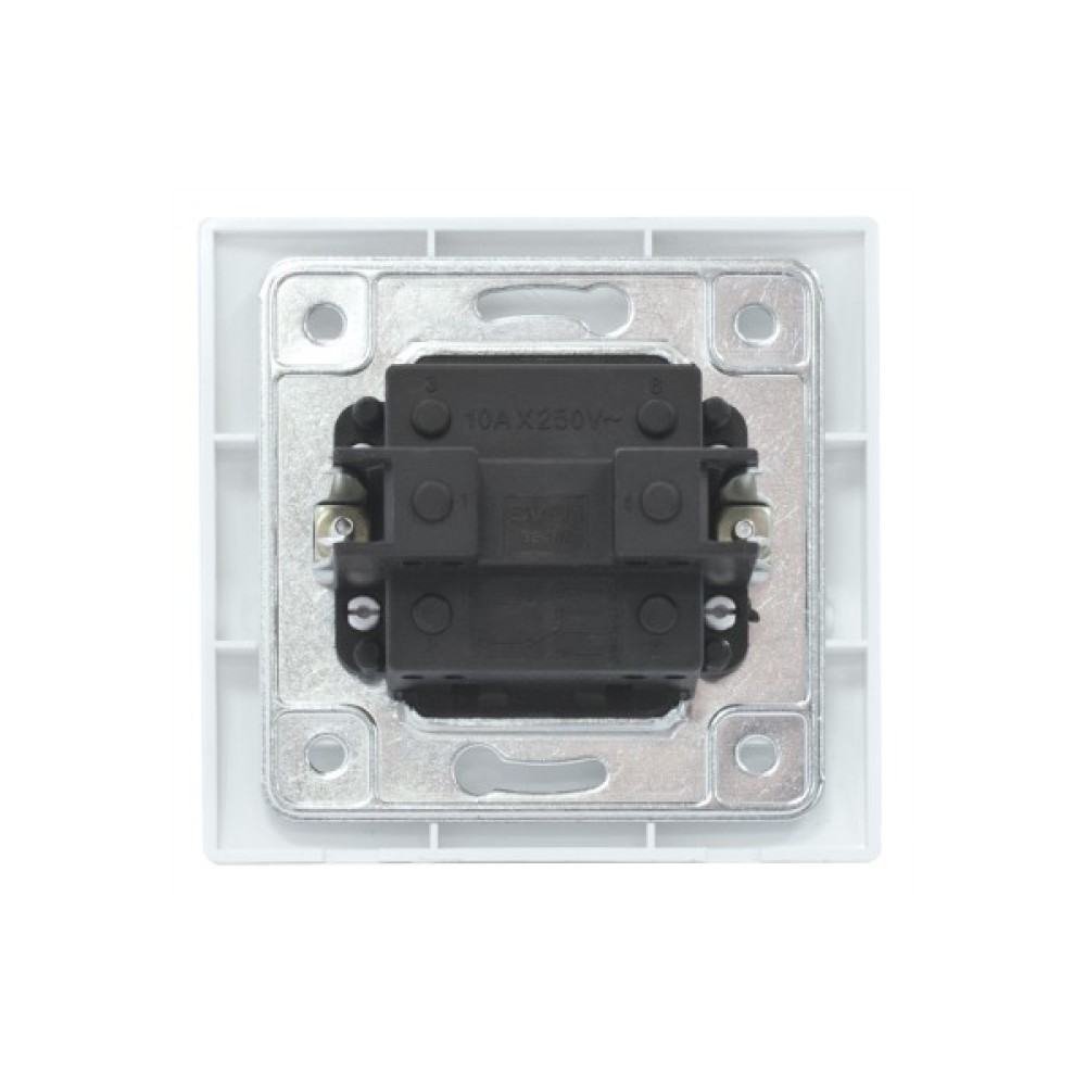 Електроустановочні обладнання SVEN SE-105 white (6438162010553) - подвійний (прохідний) перемикач на два напрямки, який призначений для комутації електричних ланцюгів. Він оснащений функцією перемикання на два напрями, що дає можливість управління двома освітлювальними приладами з декількох точок. Величина максимально допустимого струму навантаження становить 10А. Матеріал корпусу - негорючий PC-пластик, забезпечує міцність, безпека, нагревостойкость в процесі експлуатації, стійкий до впливу температур до 650 °С. Основу механізму з термостійкого пластику володіє необхідними діелектричними властивостями і забезпечує стійкість до займання до 850 °С. А мідні контакти вимикачів, плаковані срібним сплавом, забезпечують стабільно високу якість контактування при багаторазових комутаціях ланцюгів зазначеної потужності.