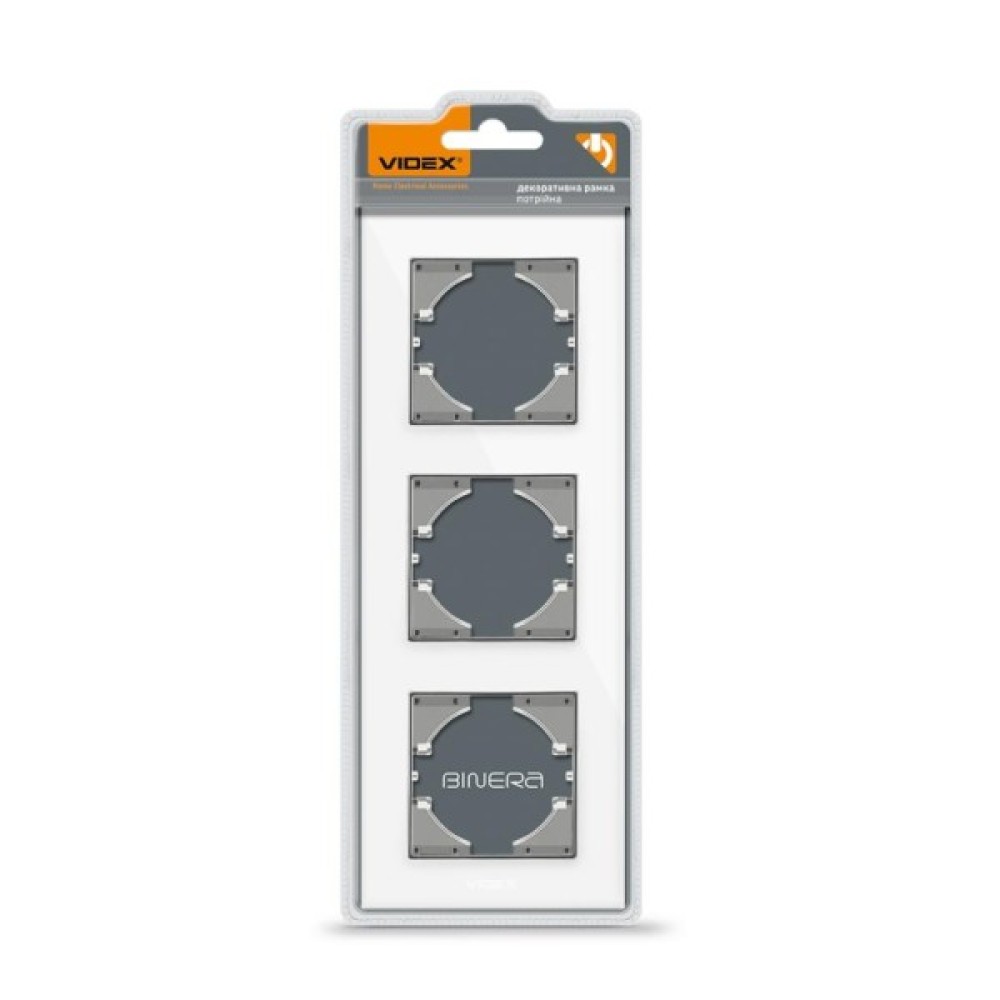 Рамка Videx BINERA біле скло 3 поста вертикаль (VF-BNFRG3V-W)