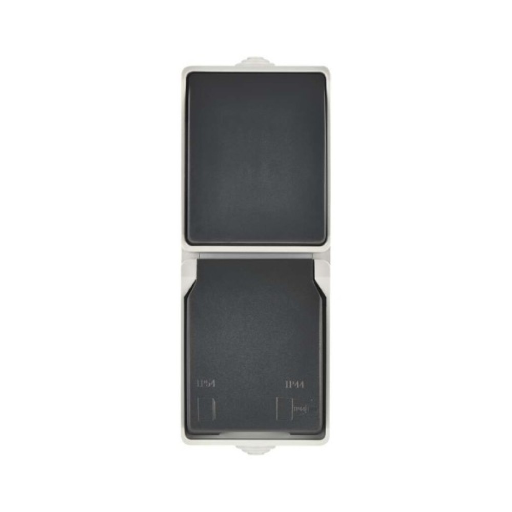 Розетка EMOS + вимикач прохідний вертикальний зовнішній сірий IP44 (A1396.4)