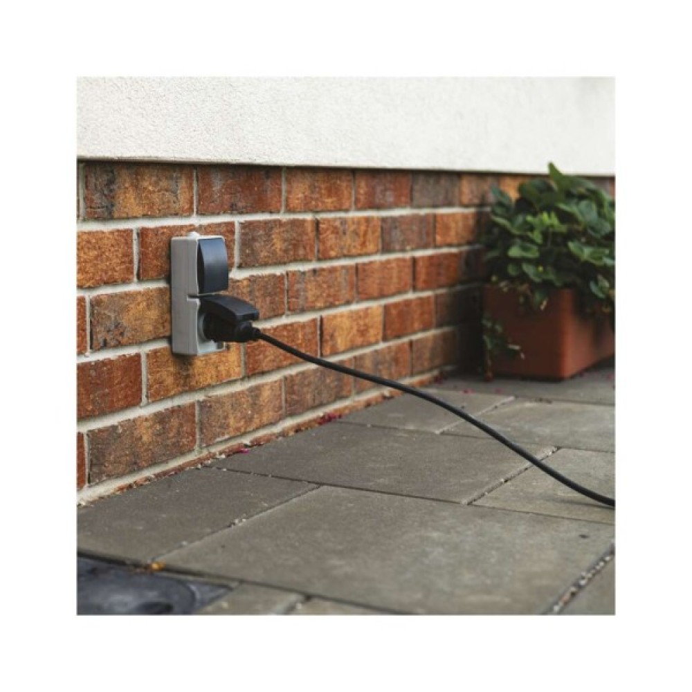 Розетка захищена від пилу і бризок води за стандартом IP44, гніздо розетки накривається кришкою.