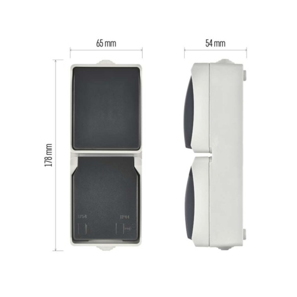 Розетка, EMOS, вимикач, прохідний, вертикальний, зовнішній, сірий, IP44, A13964