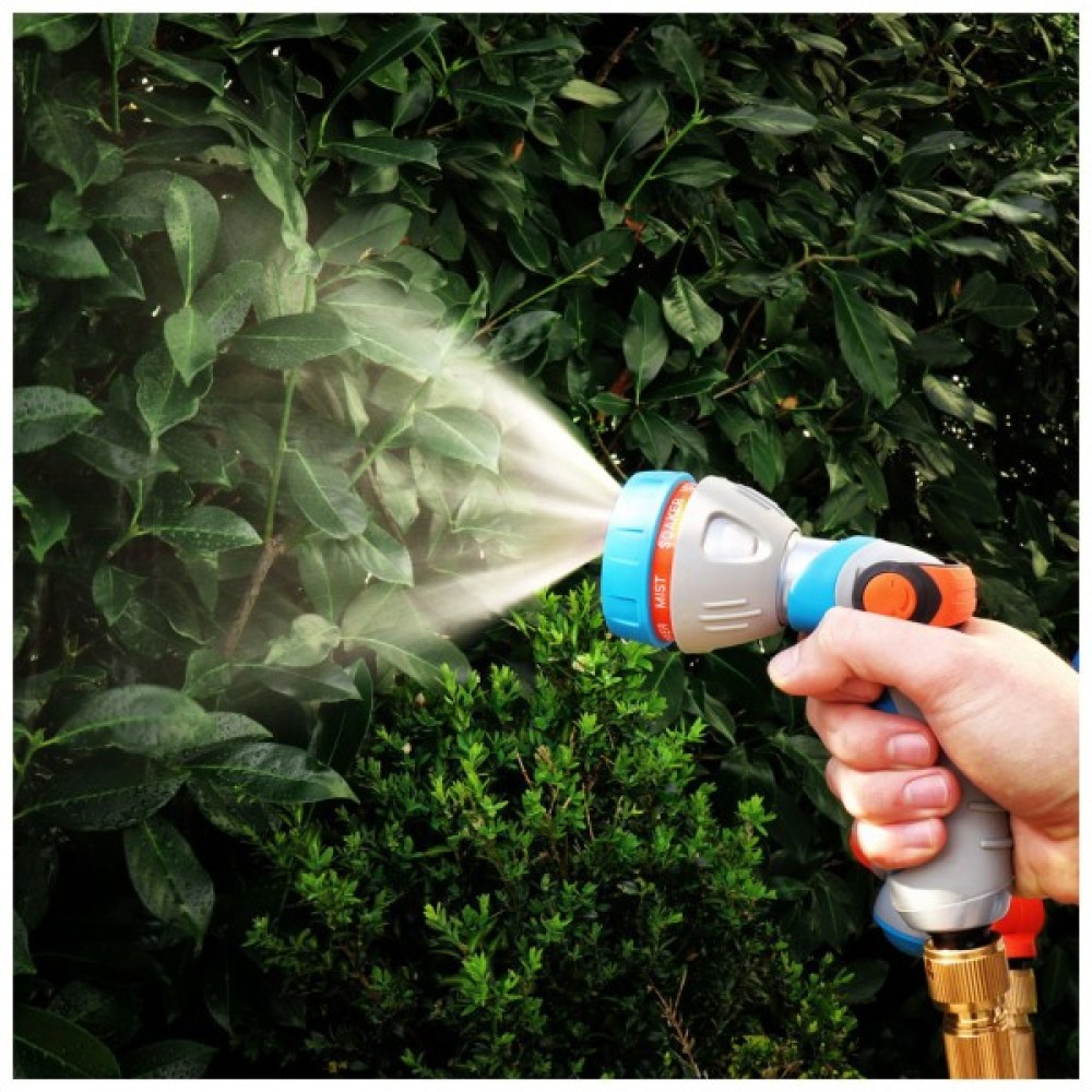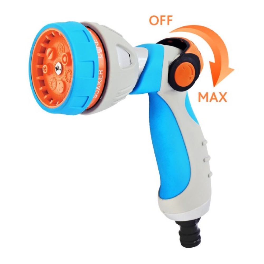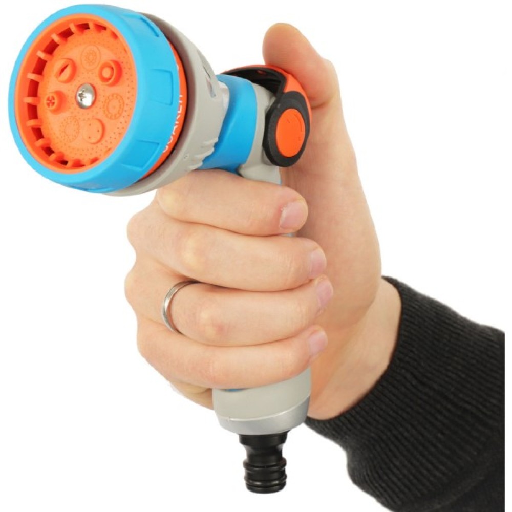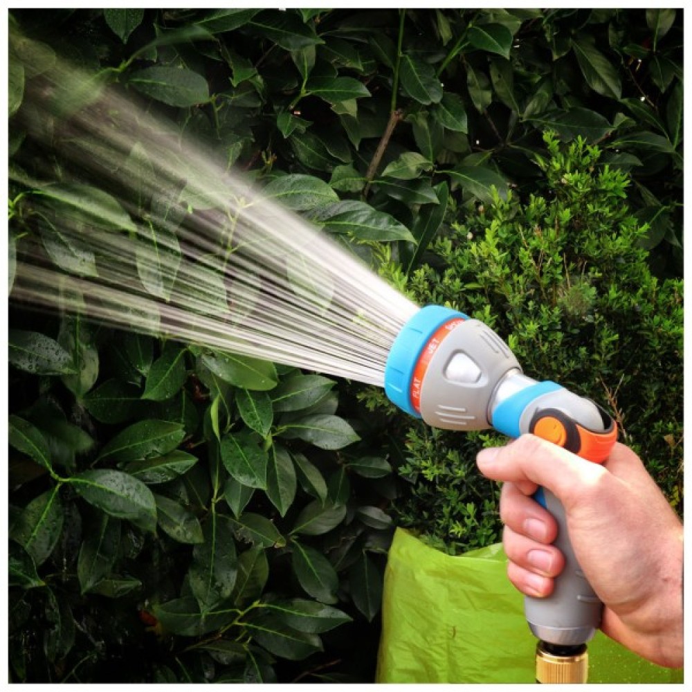 Пістолет для поливу легко регулює подавання води із 7 типами струменя: від точкового до великого розпилення, що дає змогу виконувати різні типи робіт.