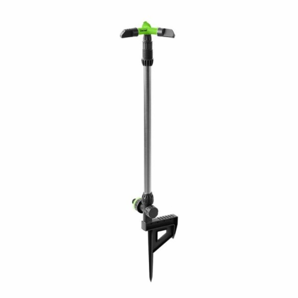 Розпилювач круговий пластиковий на штанзі довжиною 68 см використовується для стаціонарного поливу присадибних ділянок при підключенні до водопровідного шлангу за допомогою з’єднувача. Регулювання сопел дозволяє поливати певну частину присадибної ділянки. Дальність поливу до 8 м. Два сполучних гнізда дозволяють використовувати його в ланцюжку поливу з декількох розпилювачів.