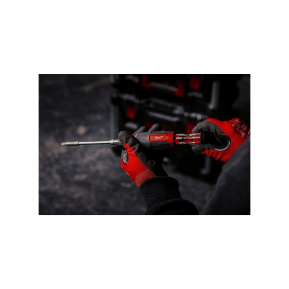 Викрутка Milwaukee зі змінними вставками 14 в 1 (4932480582) – це універсальний інструмент, який підходить як для професійного використання, так і для домашніх потреб. Вона оснащена храповим механізмом, що дозволяє зручно працювати без зайвих зусиль, та змінними насадками, які значно розширюють її функціонал. Викрутка має багатокомпонентну рукоятку, яка забезпечує комфорт та надійний хват під час роботи. До комплекту входять 12 біт різних типів: плоский (SL), хрестоподібний Phillips (PH) і Pozidriv (PZ), зіркоподібний Torx (TX) та шестигранний (HEX). Завдяки цьому можна легко виконувати роботу з різними видами кріплення. Викрутка стандартна (фіксована), що забезпечує високу стабільність і точність під час роботи. Цей інструмент ідеально підійде для різного роду ремонтних робіт, монтажу меблів, електромонтажу та інших завдань, які потребують точної та надійної роботи з кріпленнями. Викрутка Milwaukee зі змінними вставками 14 в 1 – це надійний помічник у вашому арсеналі інструментів, який забезпечить швидке та ефективне виконання будь-яких завдань.
