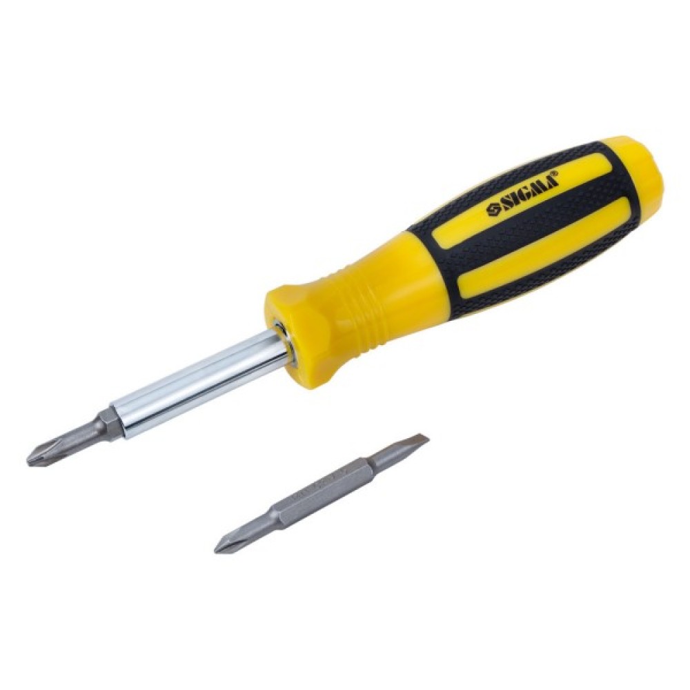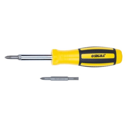 Викрутка Sigma з двосторонніми бітами 4в1 + адаптер CrV (4001801) - це універсальний інструмент, який стане в нагоді будь-якому майстру або домашньому користувачеві. Ця викрутка є типом викруток з комплектом біт/стрижнів і виступає в ролі викрутки-тримача біт. Вона має фіксовану конструкцію зі змінними насадками, що забезпечує надійність та зручність у використанні. До комплекту входять двосторонні біти з плоским (SL) і хрестоподібним (Phillips / PH) наконечниками, що дозволяє швидко адаптуватися до будь-яких завдань. Ручка викрутки виготовлена з комбінації пластику і гуми, що забезпечує комфортний та надійний хват. В комплекті ви знайдете 2 біти, що дозволяє зменшити кількість необхідних інструментів, а високоякісний адаптер CrV (хром-ванадієва сталь) гарантує довговічність і стійкість до зношування. Викрутка Sigma 4в1 - це надійний помічник для будь-якого дому чи професійного використання.